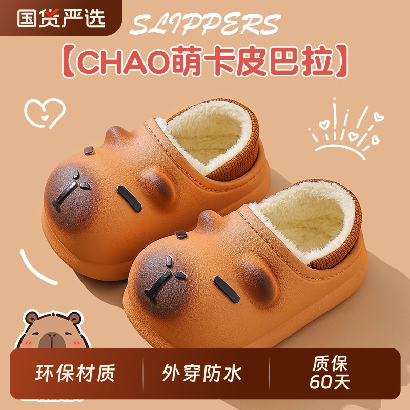 卡皮巴拉儿童棉拖鞋男童包跟冬季防滑室内亲子宝宝拖鞋女防水外穿