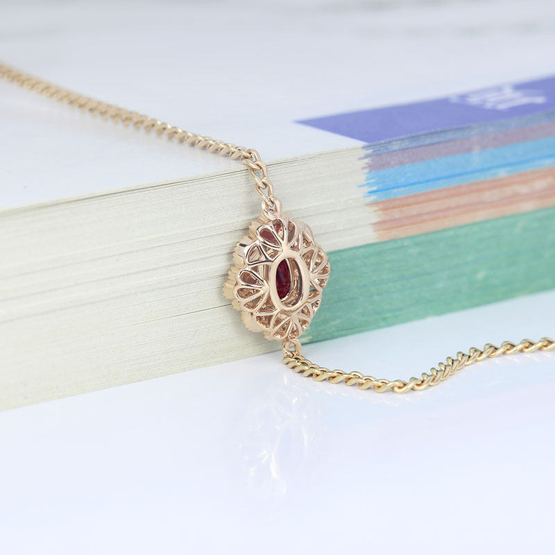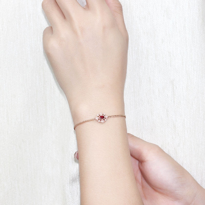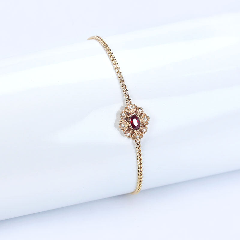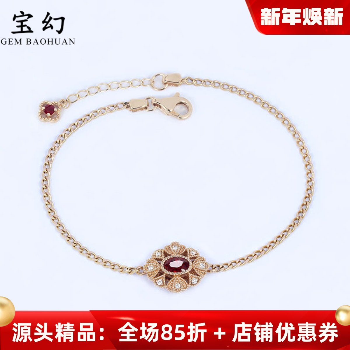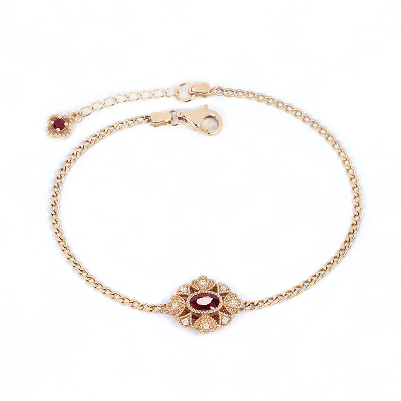 18K玫瑰金天然鸽血红宝石蕾丝古巴手链 正红色浓郁彩金钻石手饰女