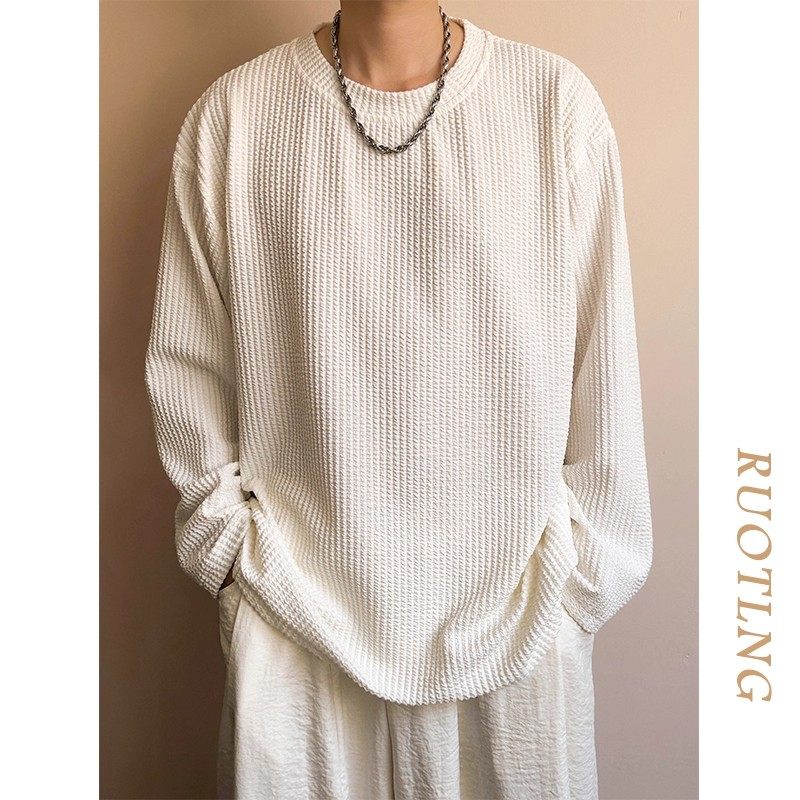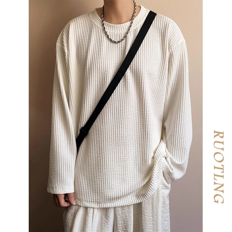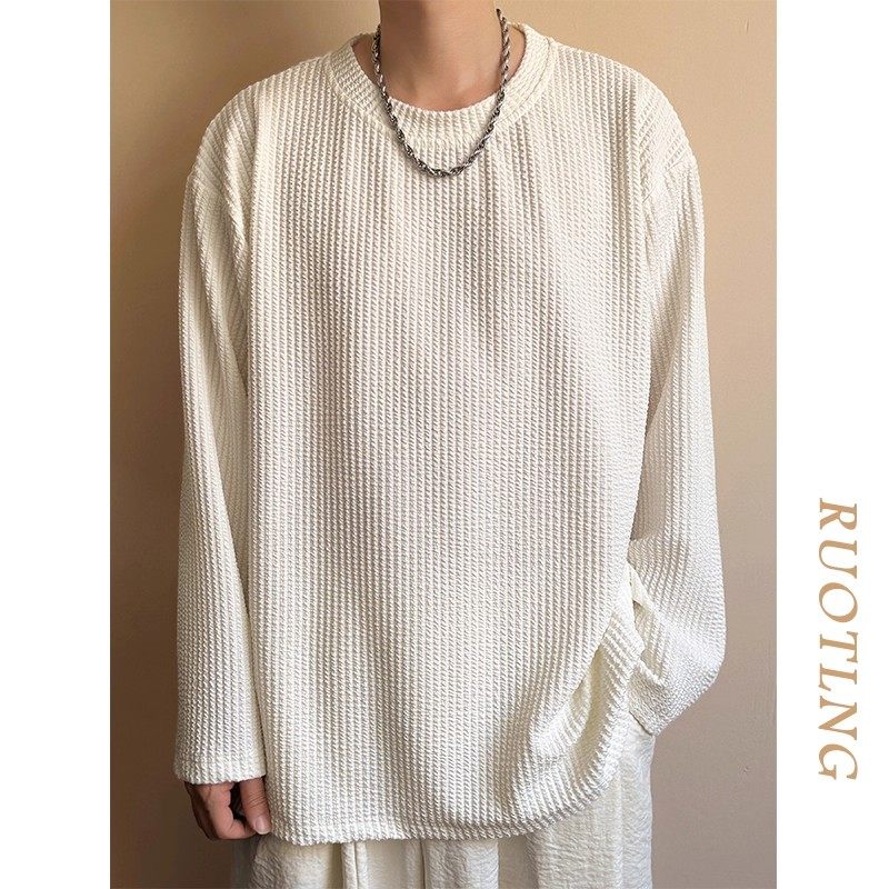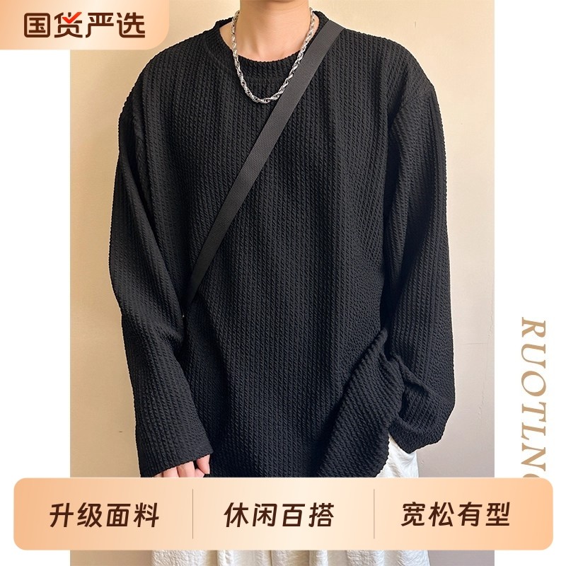 重磅长袖T恤男秋冬内搭宽松大码休闲白色打底衫上衣男装百搭卫衣