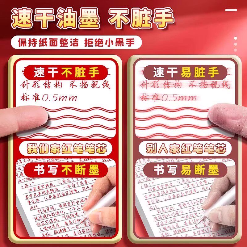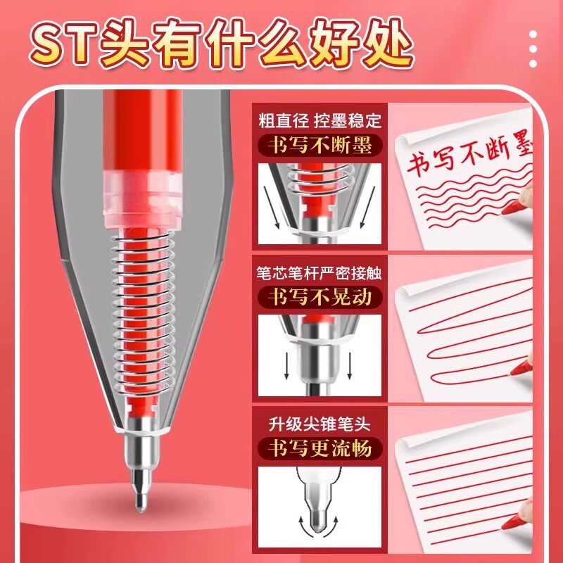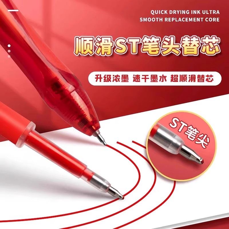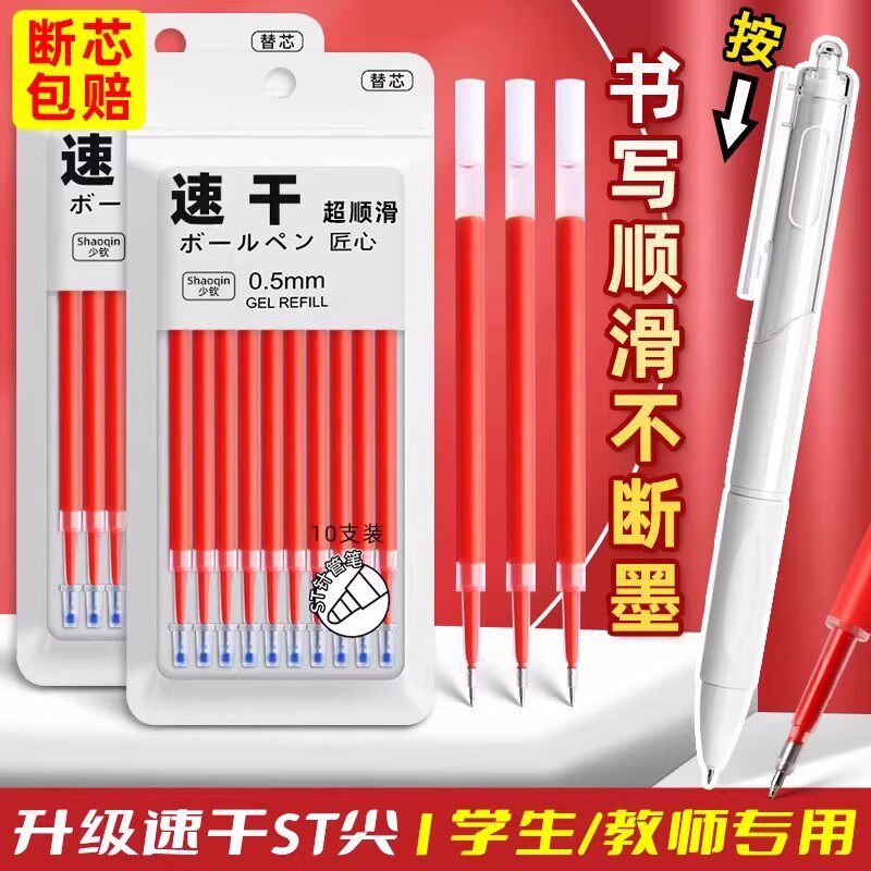红色按动笔芯速干中性笔芯黑色0.5mm按动葫芦头按压式刷题云握笔