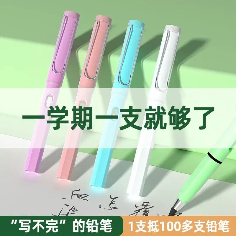 黑科技小学生专用无铅永恒铅笔免削不断芯无墨不脏手自带橡皮多色