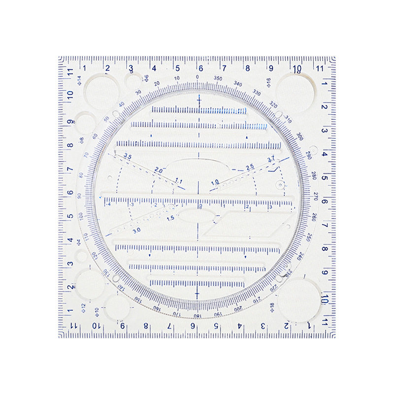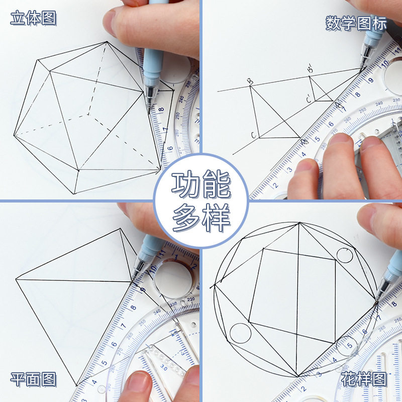 多功能尺子快速画圆几何图形绘图尺可旋转手抄报模板神器初中生高中生量角器三角尺直尺椭圆平行四边形尺子