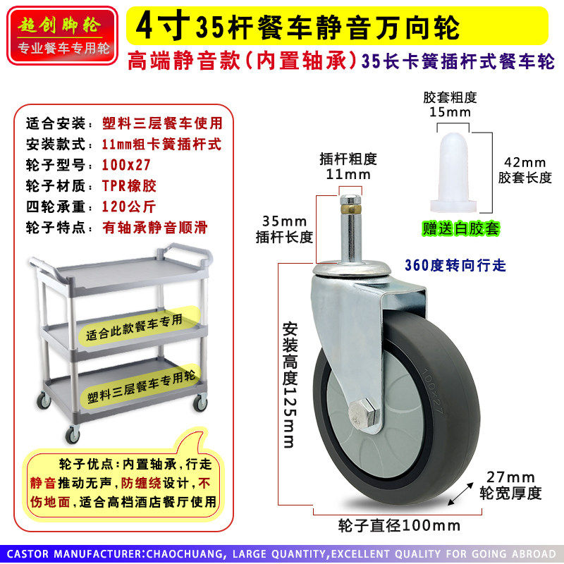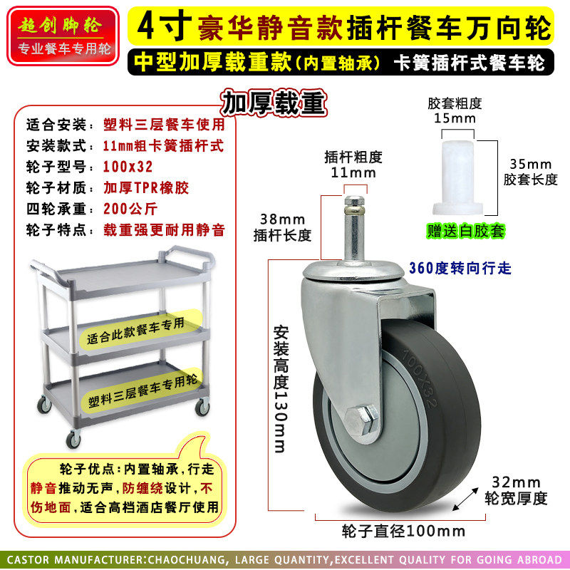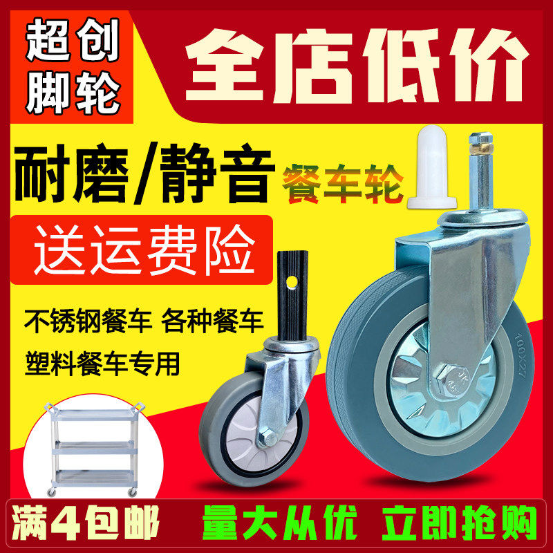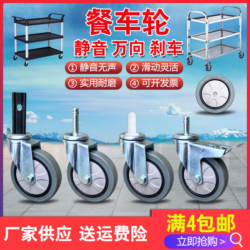 酒店餐车轮子静音4寸塑料收餐车车轮万向轮布草车方管推车轮脚轮