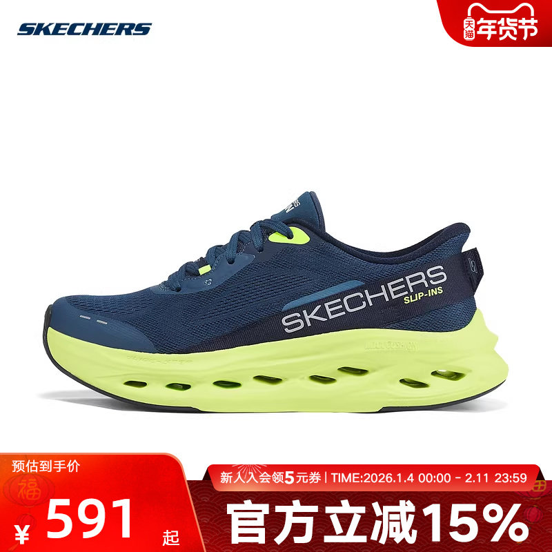 Skechers斯凯奇新款男士休闲运动风防滑缓震跑步鞋 220421/AQUA