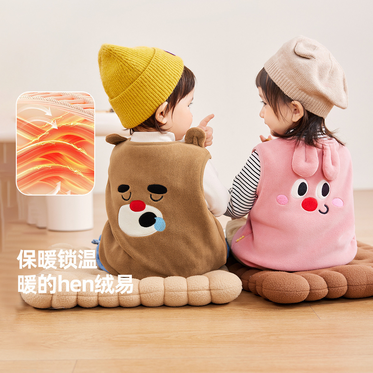 小猪大卫男女宝宝贴身马甲可爱造型恐龙狐狸颗粒绒磨毛马夹1-3岁