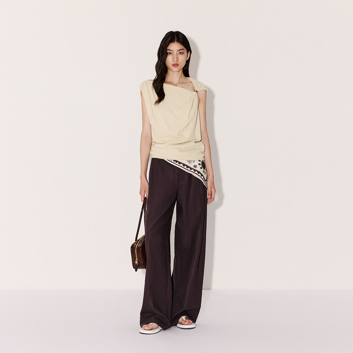【新品】OCHIRLY欧时力棉麻阔腿西装长裤超模裤宽松直筒2026春夏*