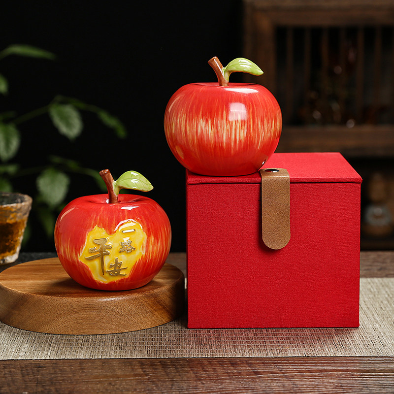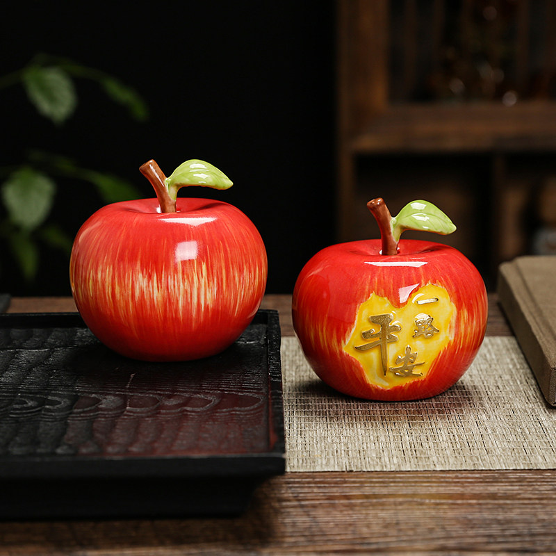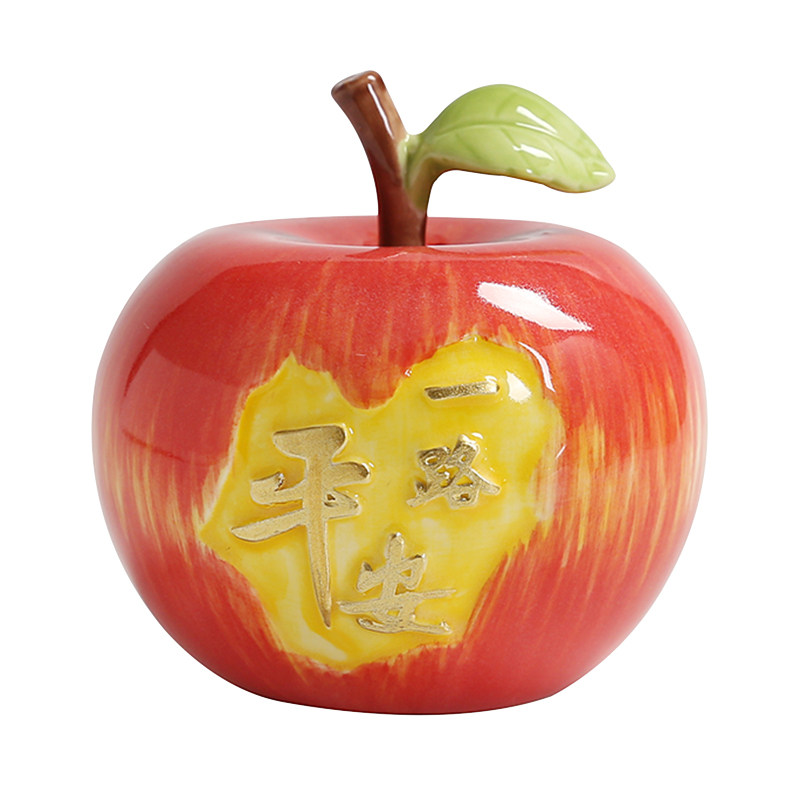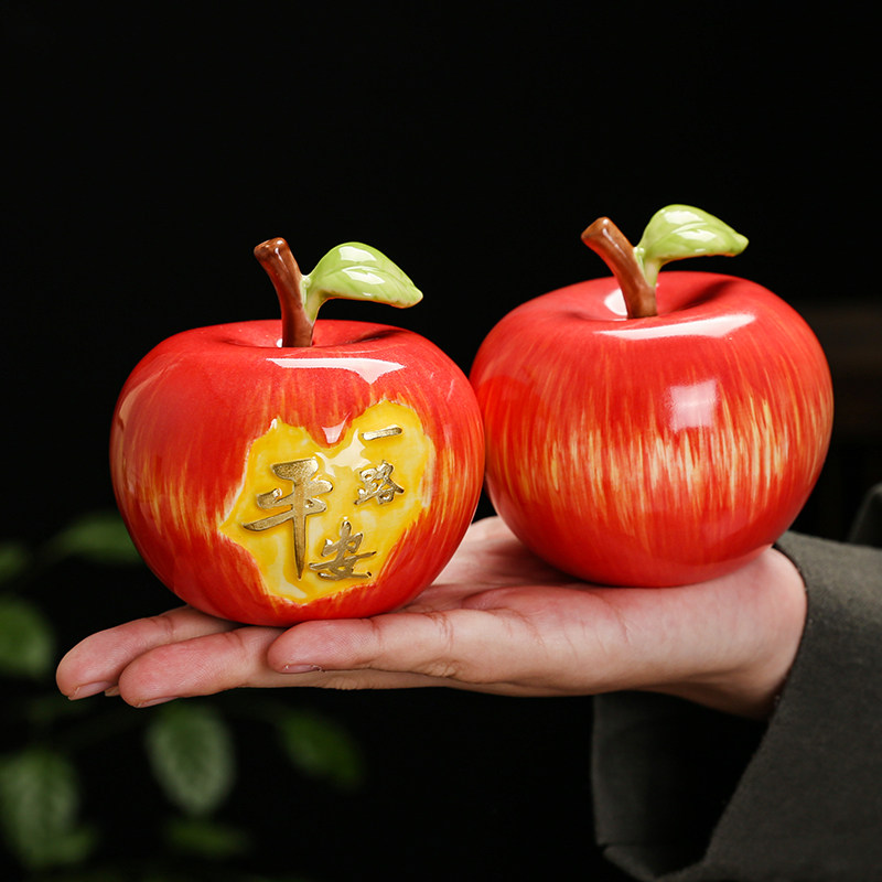 一路平安汽车摆件可爱陶瓷仿真苹果车载内装饰中控台车上装饰用品