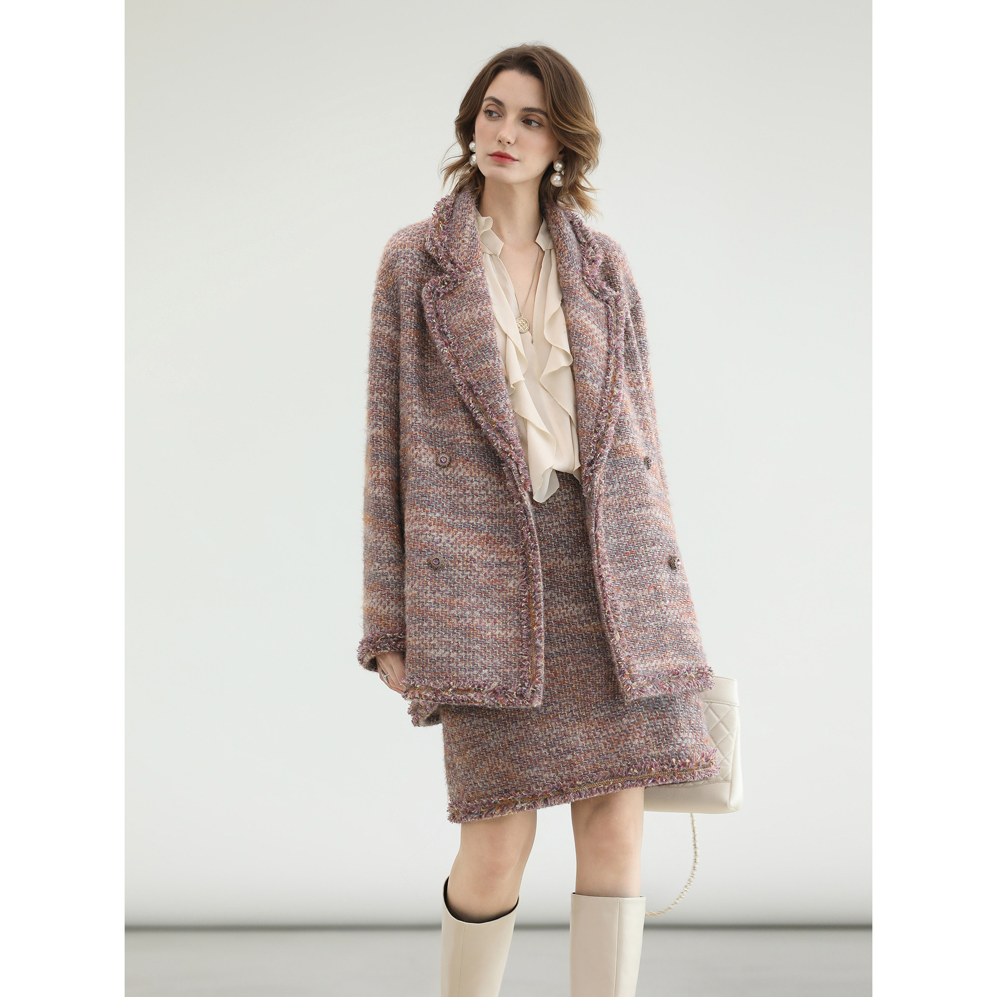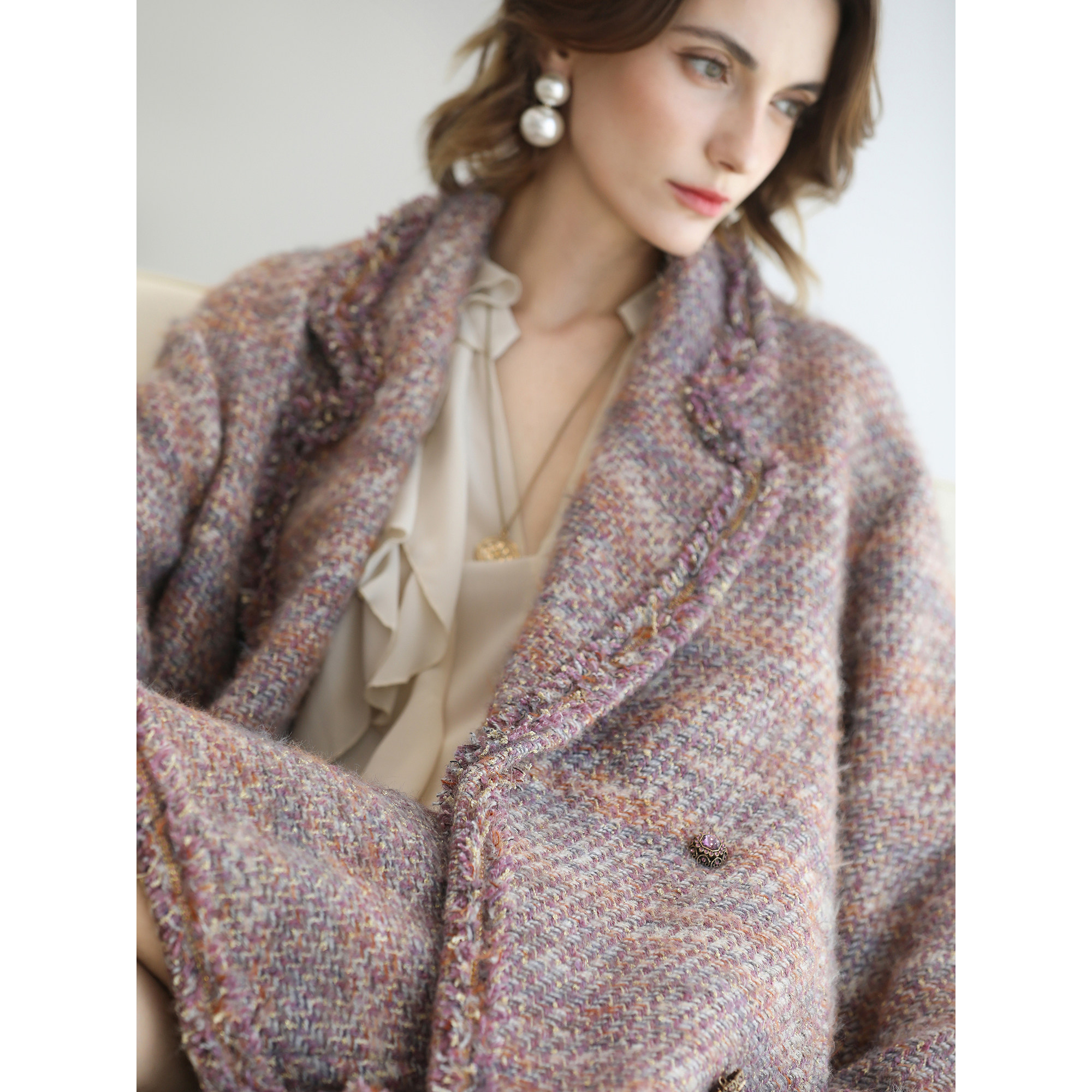 小香风粗花呢中长款外套