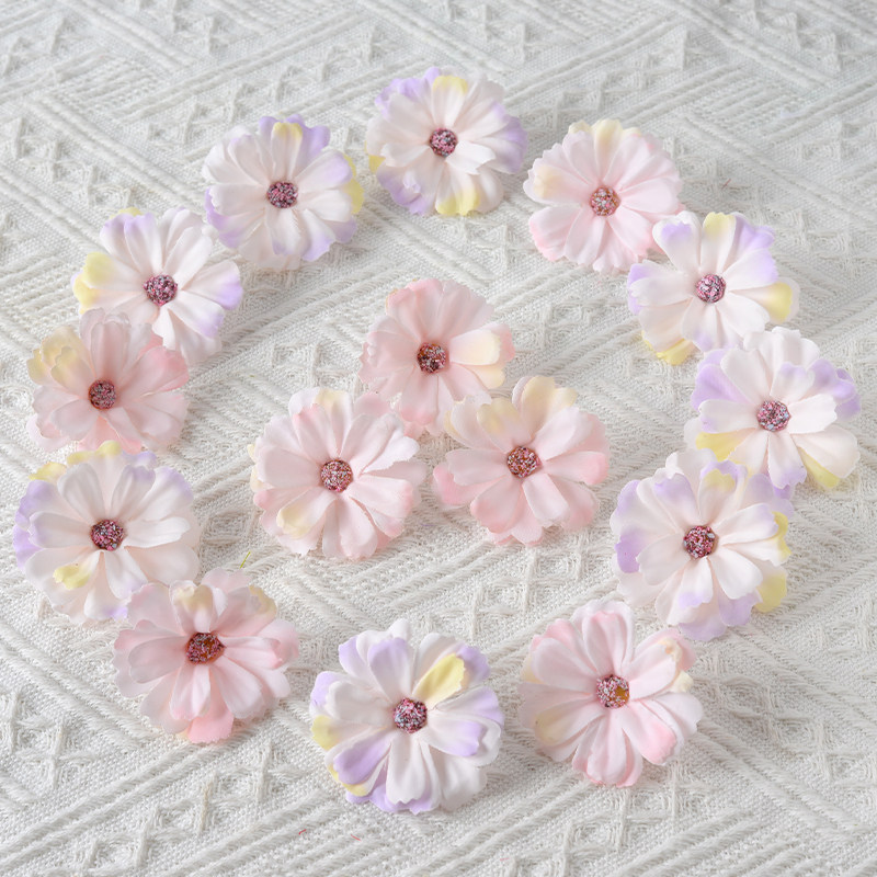 仿真绢花花头手工diy花墙胸花装饰油画乔迁落地高级菊花紫色花卉