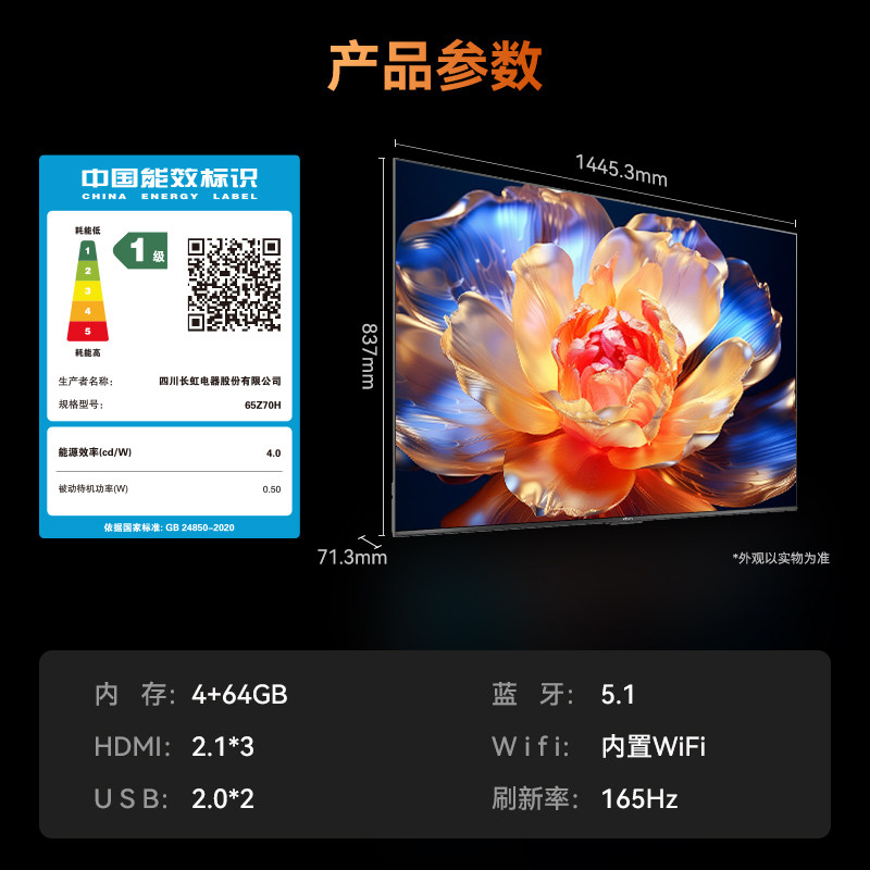 长虹欧宝丽电视65Z70H 65英寸4K液晶智能MiniLED电视139