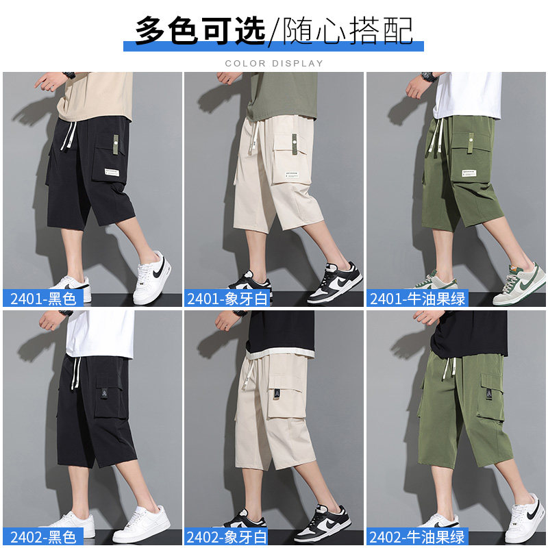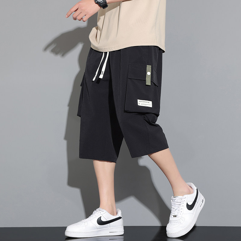 棉致工装七分裤子男士夏季薄款冰丝过膝潮流宽松透气百搭休闲短裤