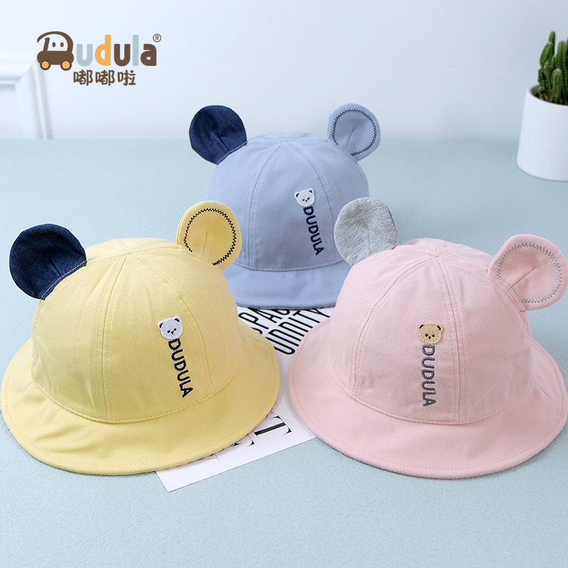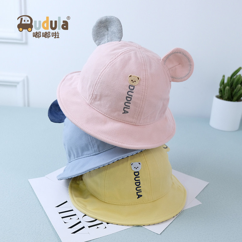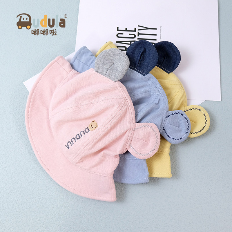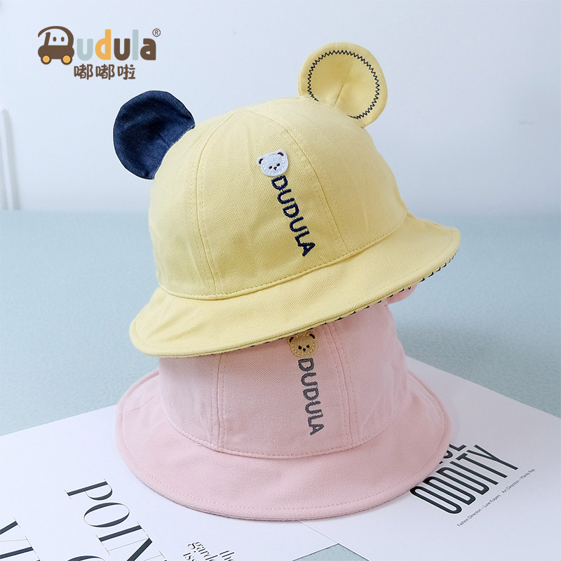 春秋儿童遮阳渔夫帽男女宝宝帽子小熊薄款盆帽防晒婴儿卡通嘟嘟啦