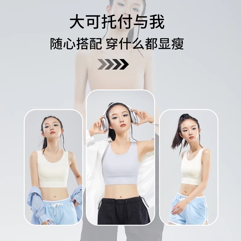 无痕内衣女小胸聚拢夏季薄款运动一体美背心式固定杯无钢圈文胸罩