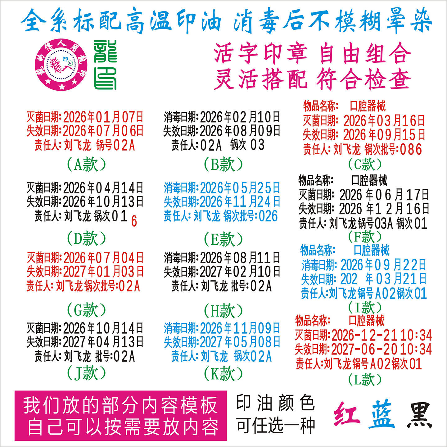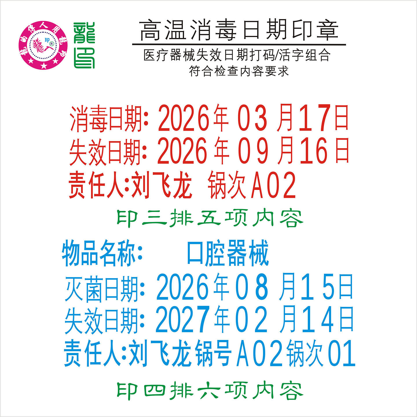 牙科器械灭菌日期印章高温不晕染锅次锅号责任人打码口腔诊所必备