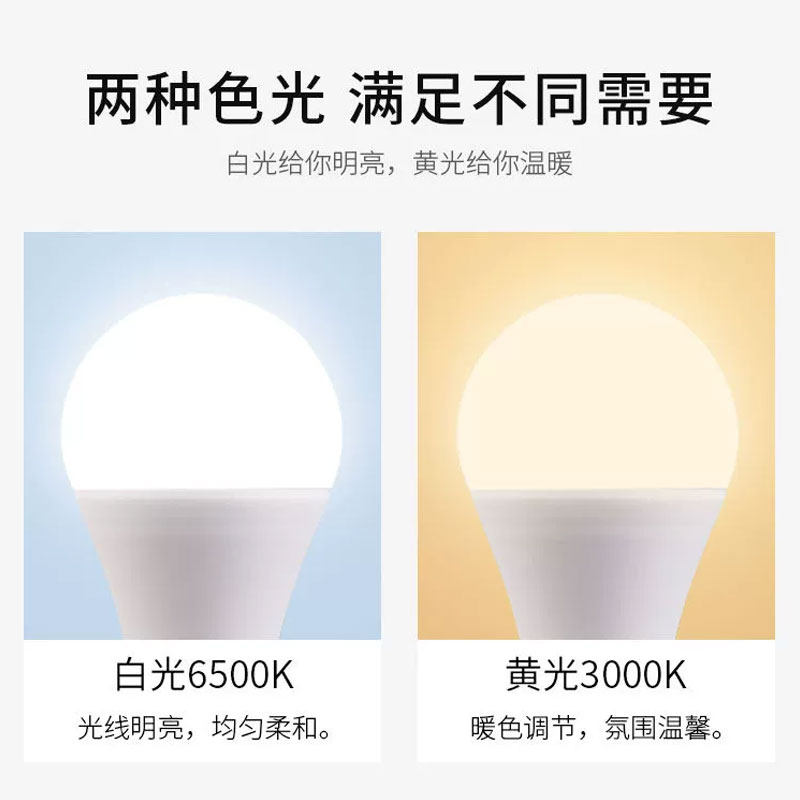 灯泡足瓦超亮led螺口e27家用白光暖黄光5W7W9W12W15W18W24W节能灯