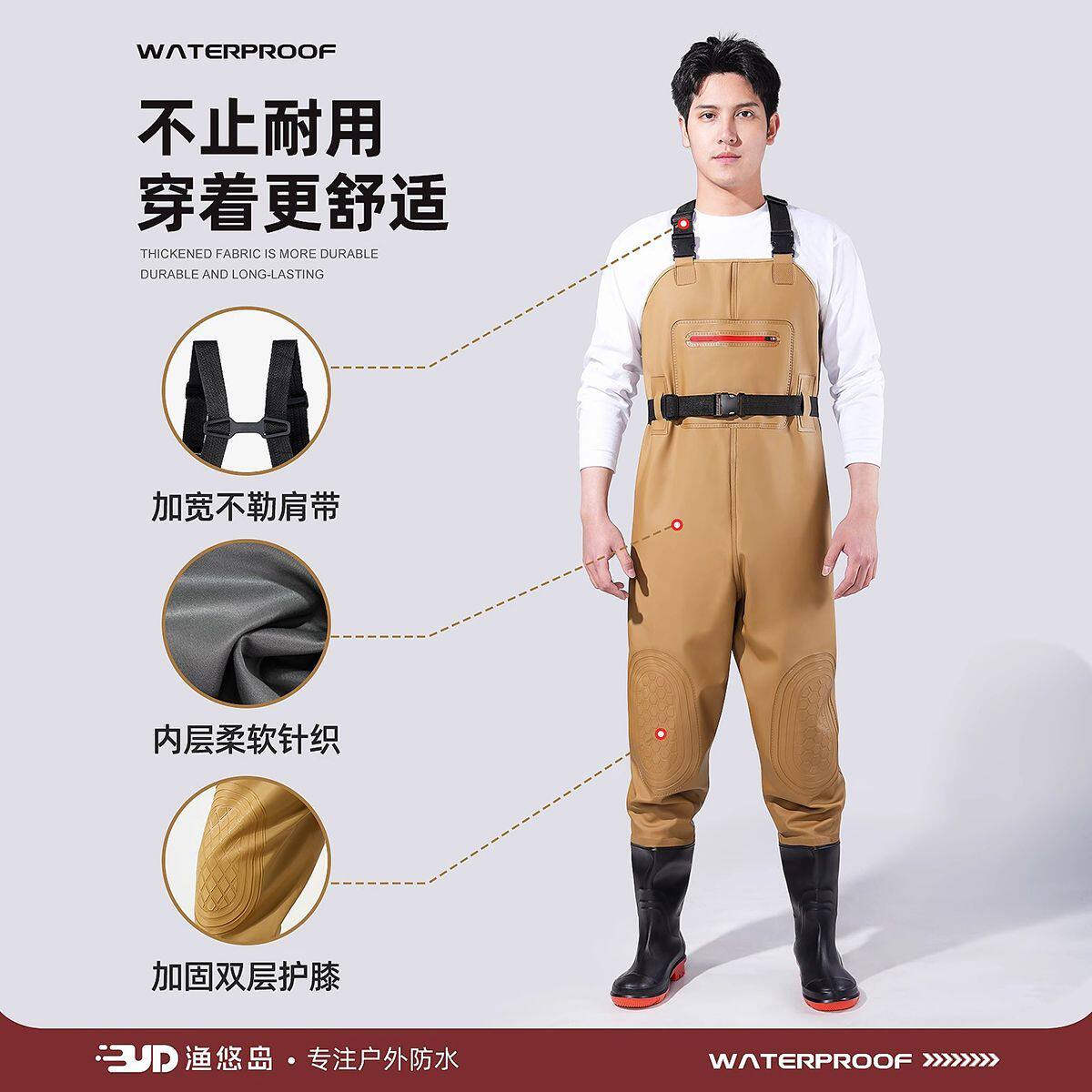 连体防水裤加厚柔软型下水裤捕鱼捞鱼男款全身耐磨裤子涉水渔夫裤