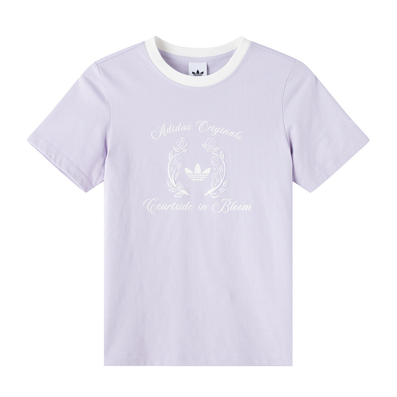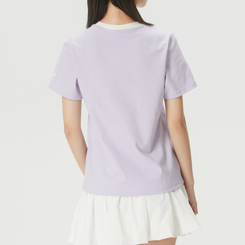 阿迪达斯紫色短袖女装夏季新款三叶草圆领透气运动半袖T恤KY5735