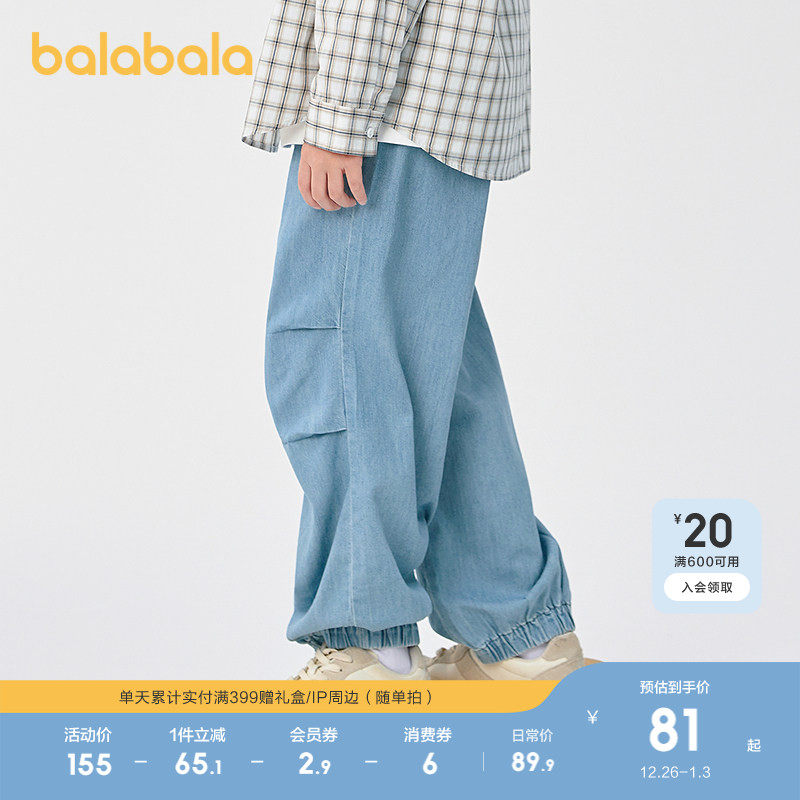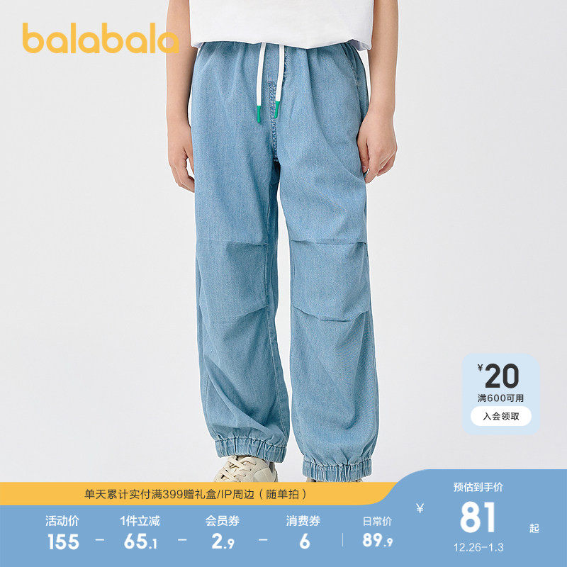 巴拉巴拉童装男童裤子儿童长裤夏装中大童凉感牛仔裤束脚时尚舒适