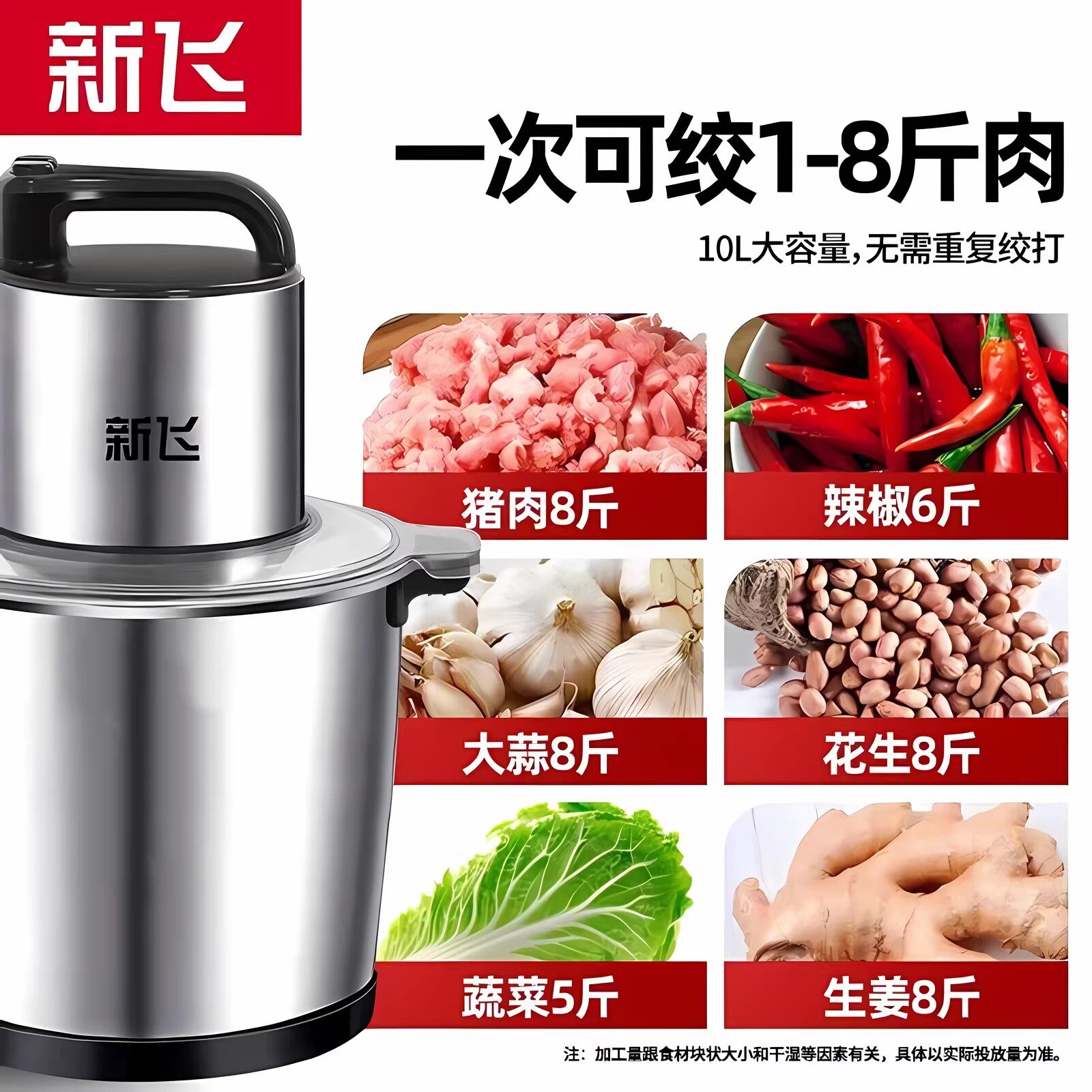 新飞绞肉机商用饭店电动不锈钢多功能打肉馅机碎菜料理器碎菜机碎