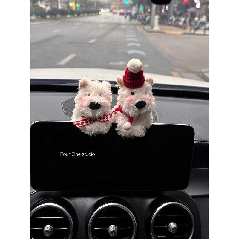 可爱西高地汽车摆件车内装饰中控趴趴公仔车装饰品创意毛绒玩偶