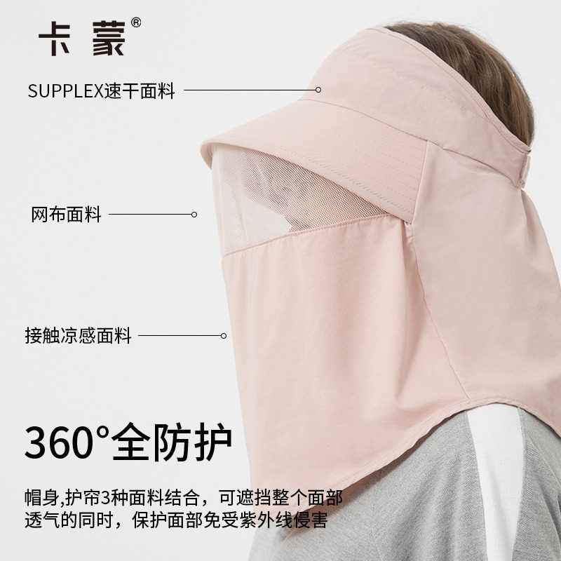 卡蒙全方位防晒帽女夏天大头围帽子面罩透气遮阳帽防紫外线太阳帽