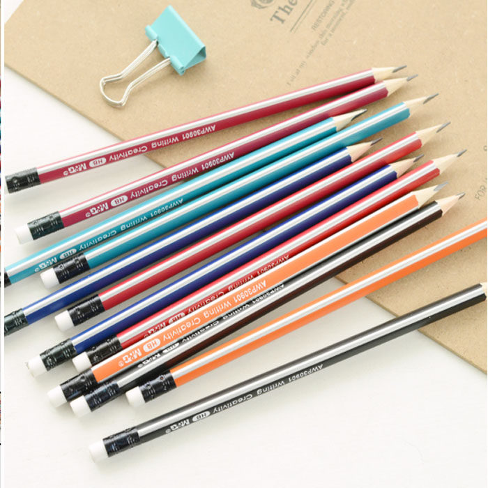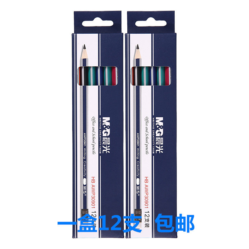 晨光HB铅笔 AWP30901多彩条纹铅笔 带橡皮三角杆矫正握姿学生铅笔