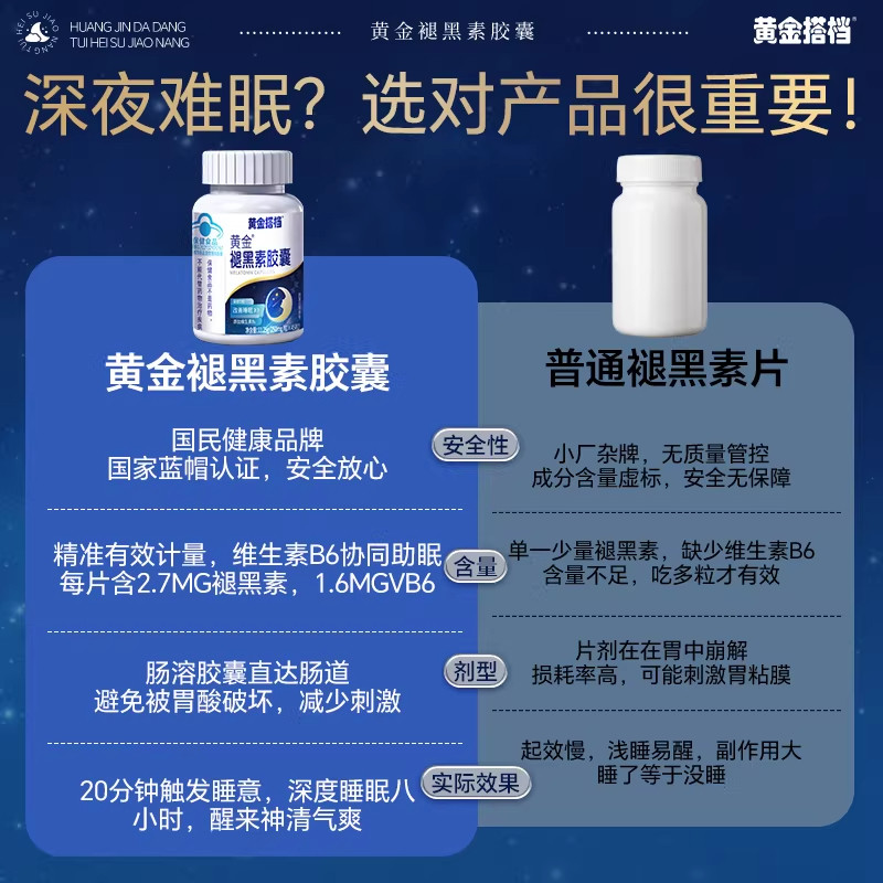 褪黑素维生素b6片安心助眠学生改善睡眠退黑色素非软糖安眠睡眠片