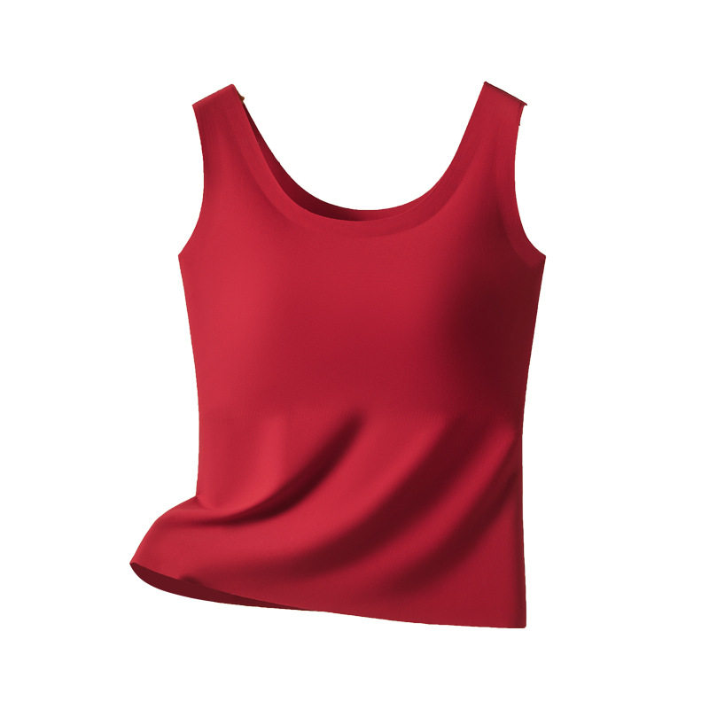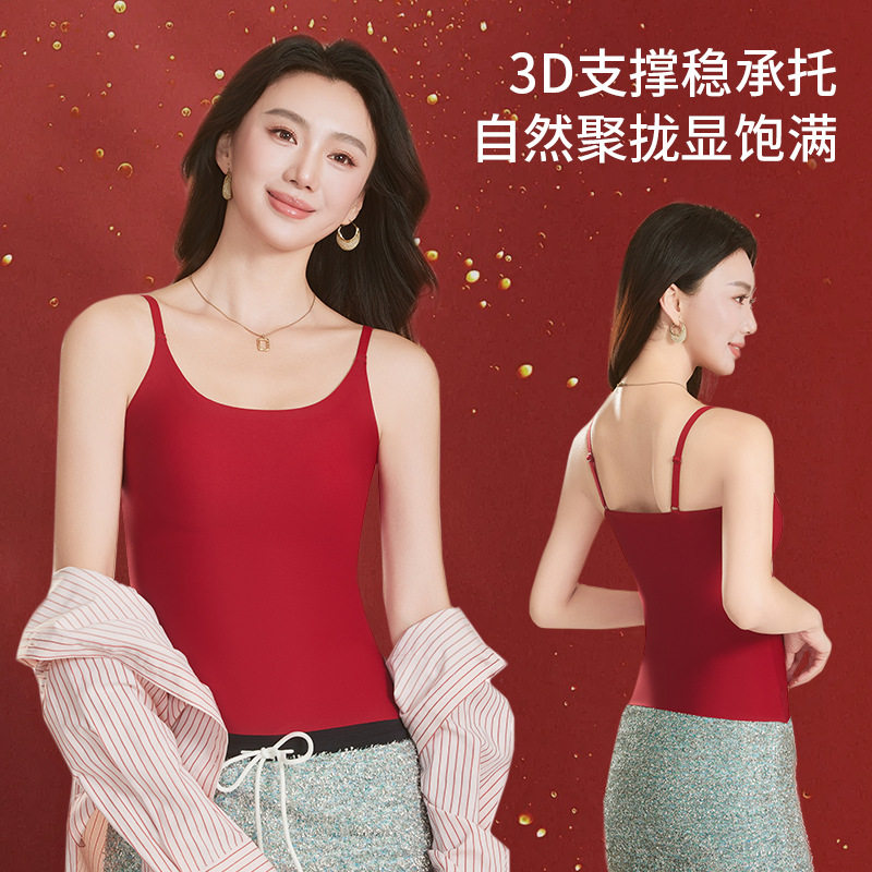 本命年红色吊带背心女带胸垫一体内衣马年新娘大码胖mm200斤内搭