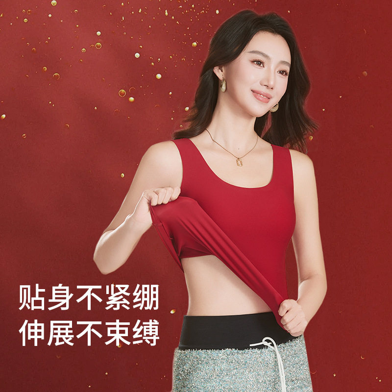 石墨烯发热德绒保暖背心女秋冬季加绒加厚带胸垫无痕内衣2025新款