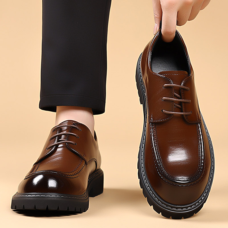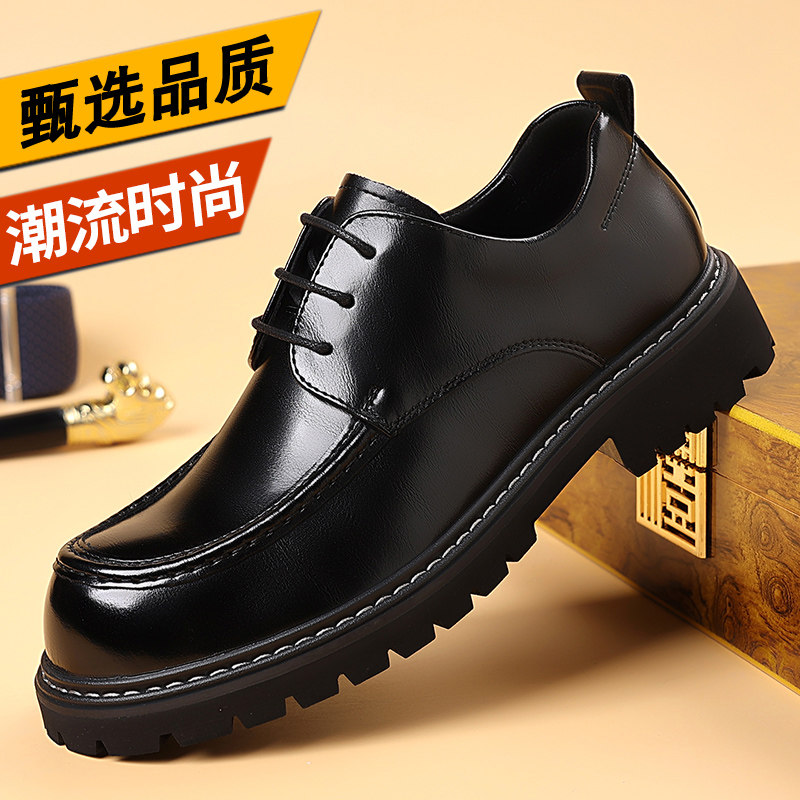 品质男鞋高档英伦大头商务休闲皮鞋男士工装鞋子正装牛皮黑色棕色