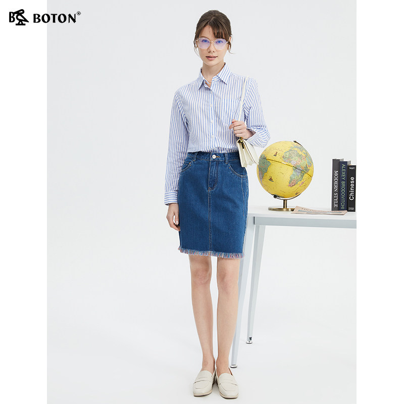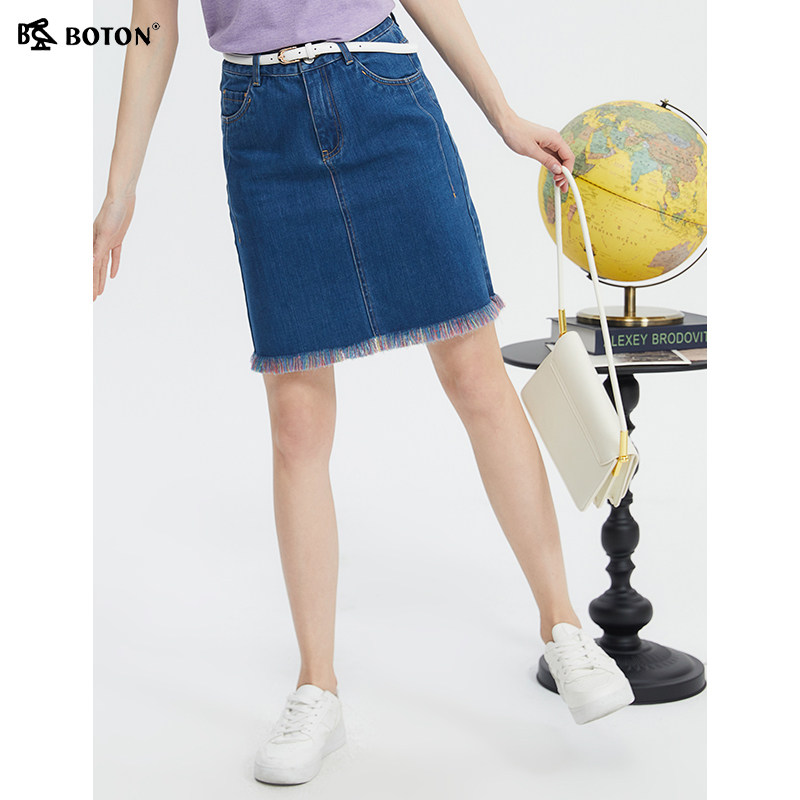 波顿2025春夏新款女士高腰牛仔短裙流苏高端包臀A字美式休闲裙子
