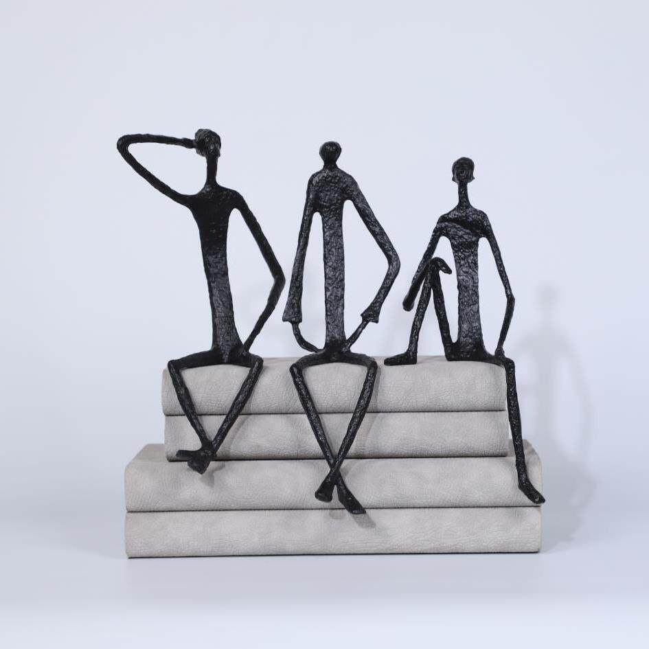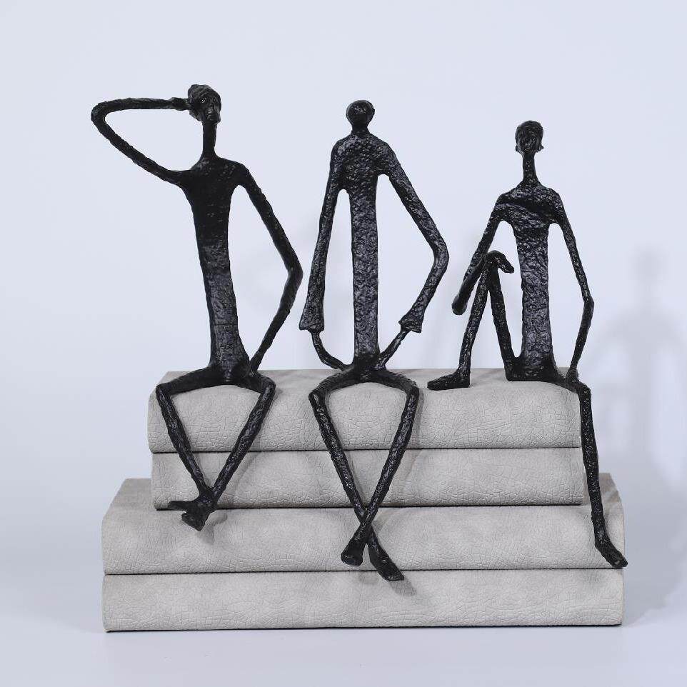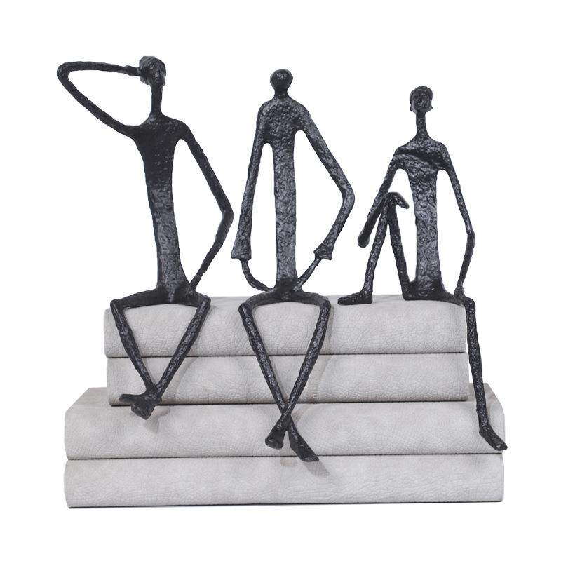 现代简约铸铁人艺术创意抽象人物坐姿摆件软装饰酒店售楼处样板间
