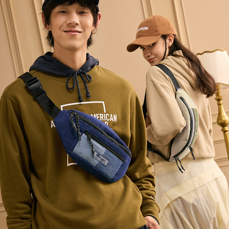 Champion冠军胸包男女情侣简约休闲斜挎包潮流通勤单肩包撞色拼接