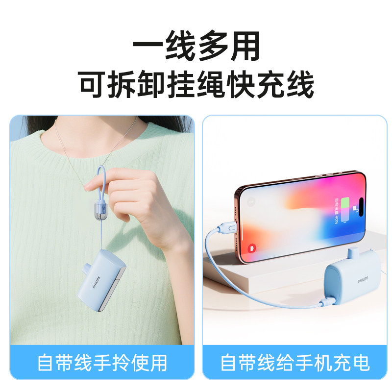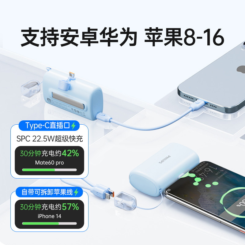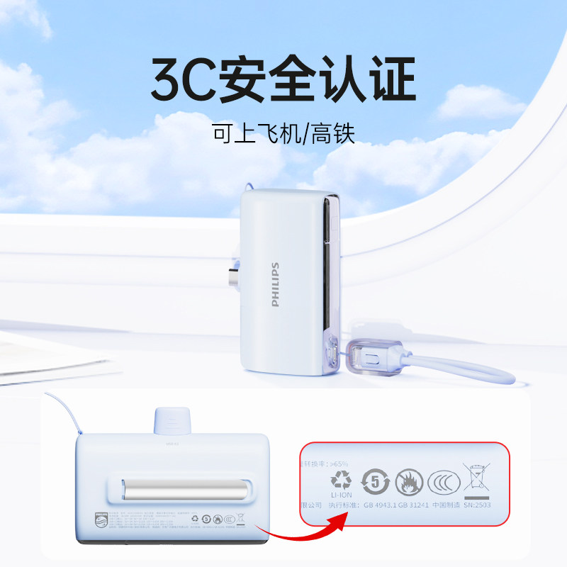 【充电宝3c认证可上飞机】飞利浦2025新款充电宝快充大容量自带双线快充小巧便携10000mAh口袋版适用苹果17