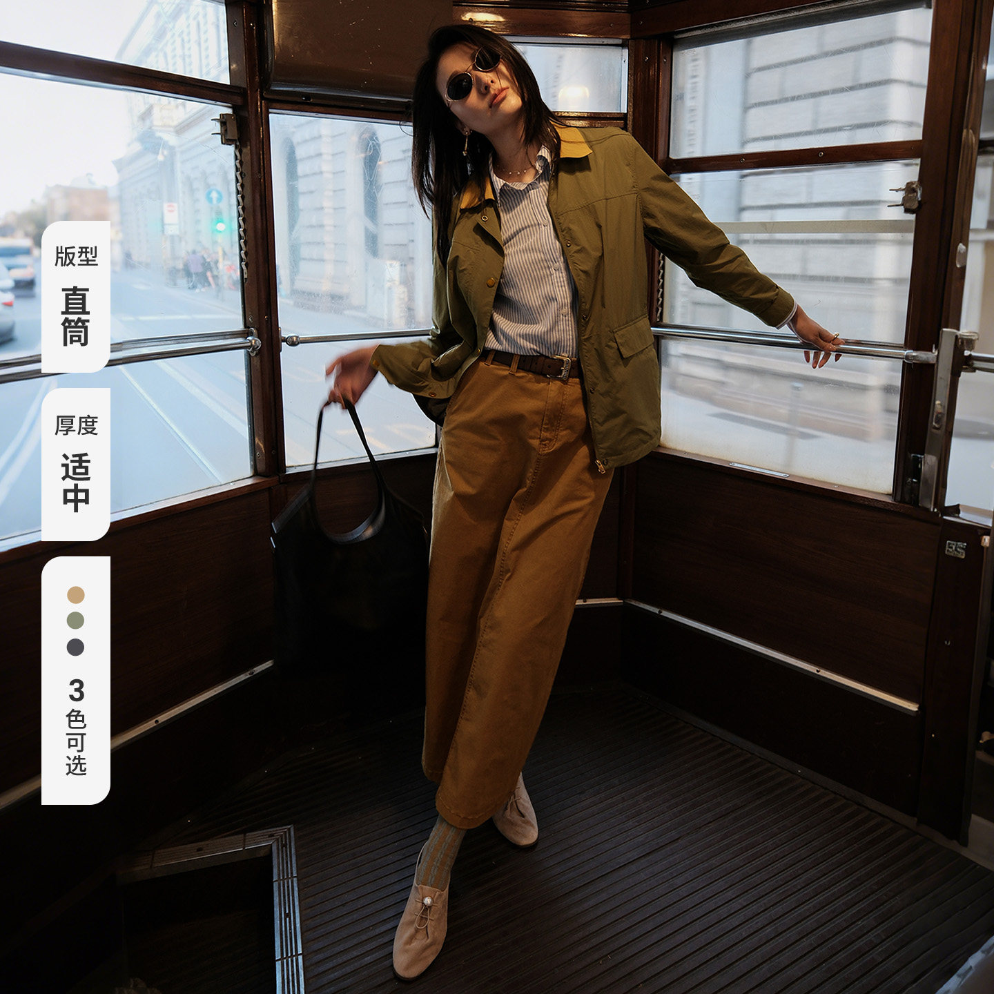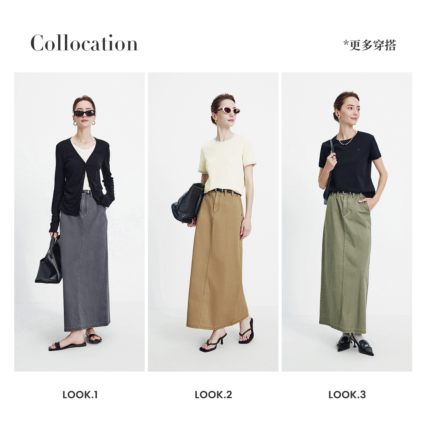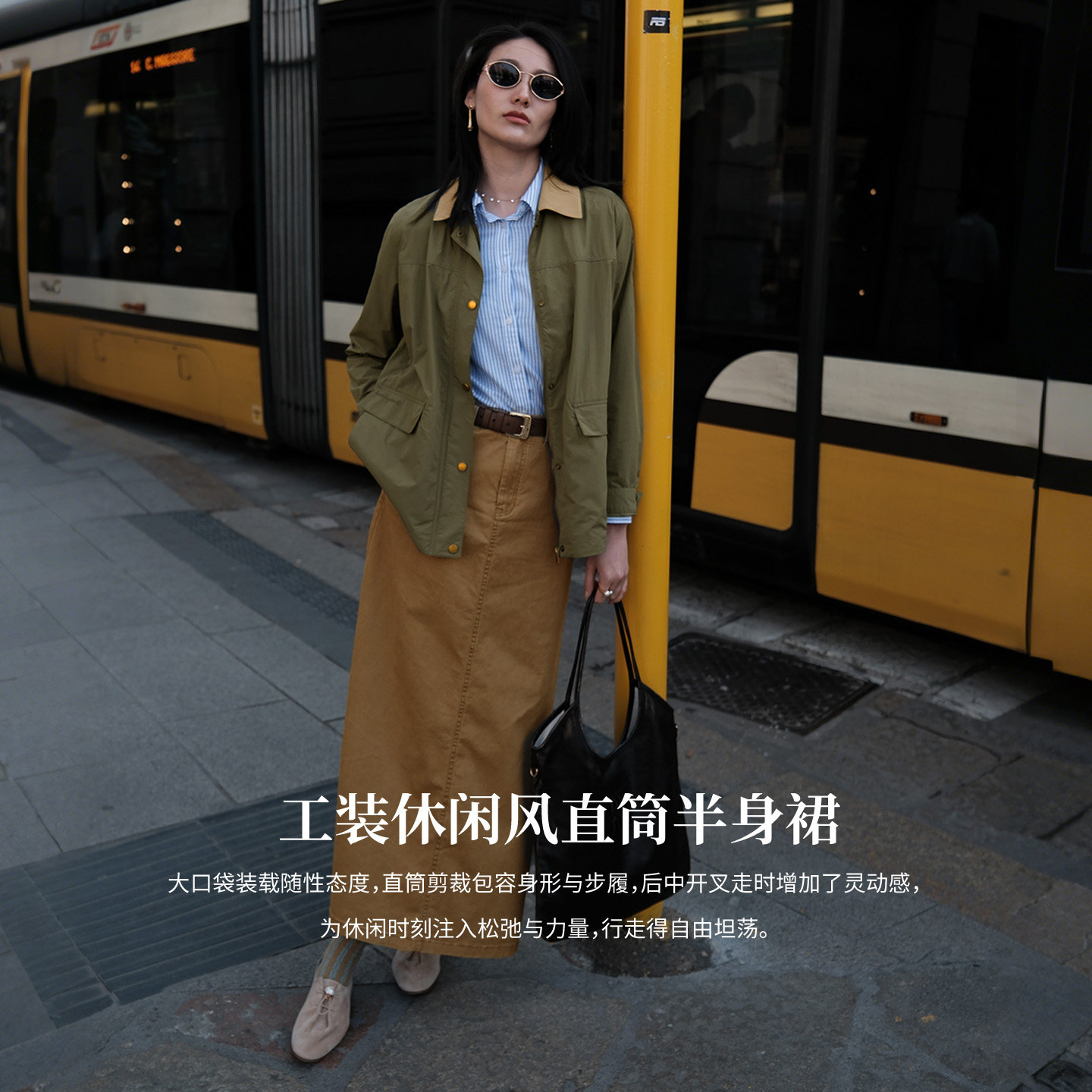 [明星同款]Navigare小帆船卡其色牛仔半身裙女春夏高腰工装直筒裙