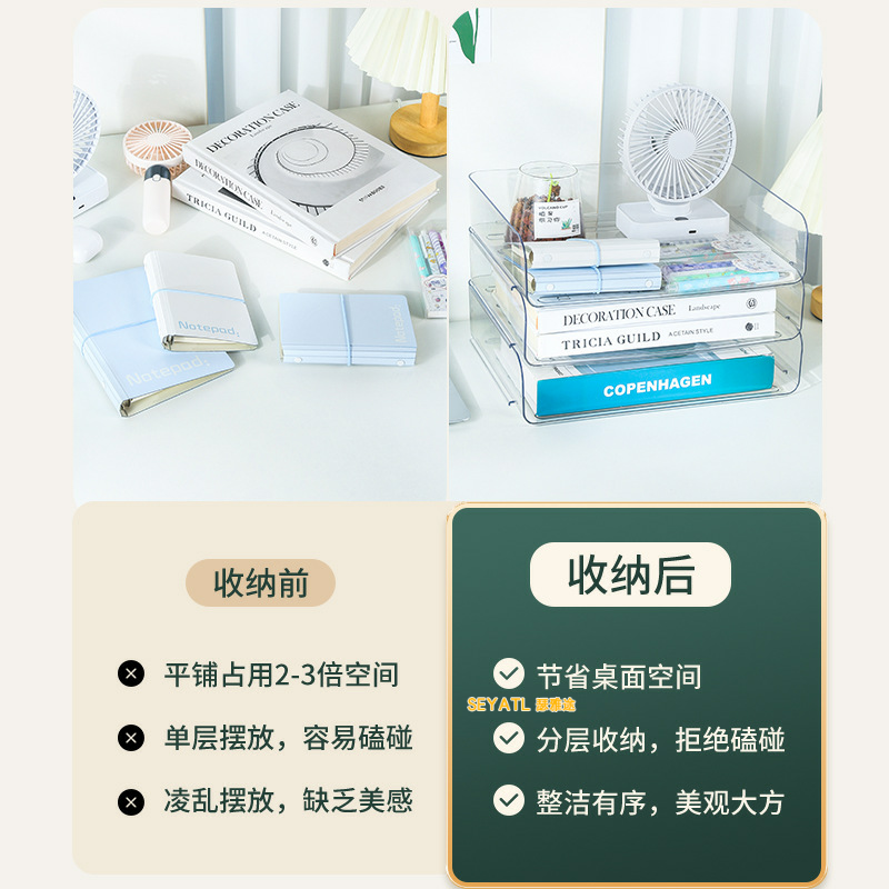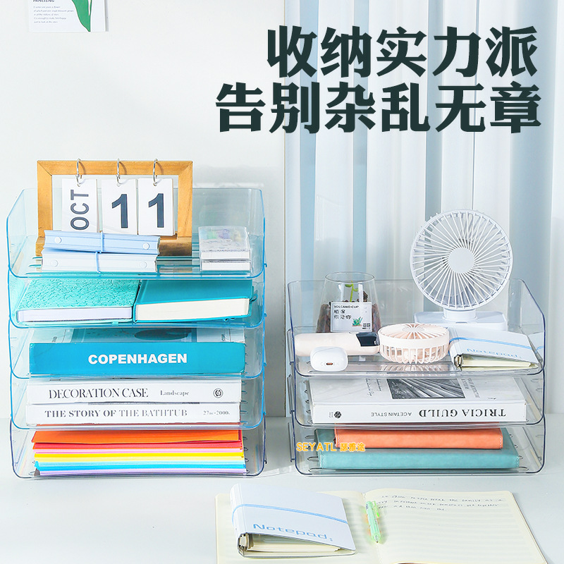 SEYATL文件收纳架桌面办公收纳盒四层亚克力整理盒桌面文件柜526