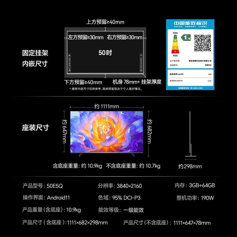 海信电视 50E5Q 50英寸 U+MiniLED 144Hz高刷 以旧换新补贴电视机