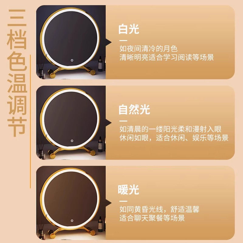 2026新款台式智能led化妆镜带灯女生房间桌面主卧梳妆台镜子高清
