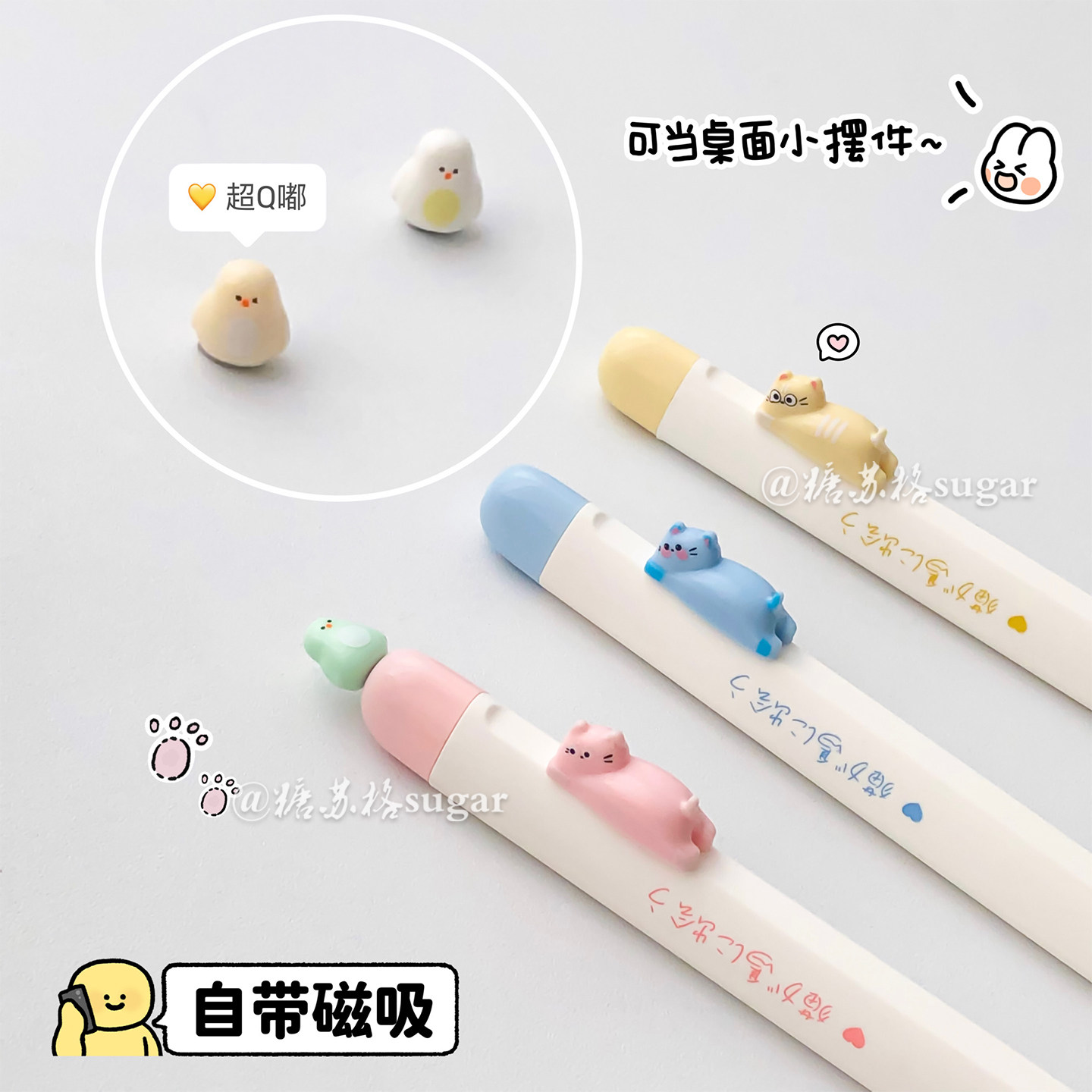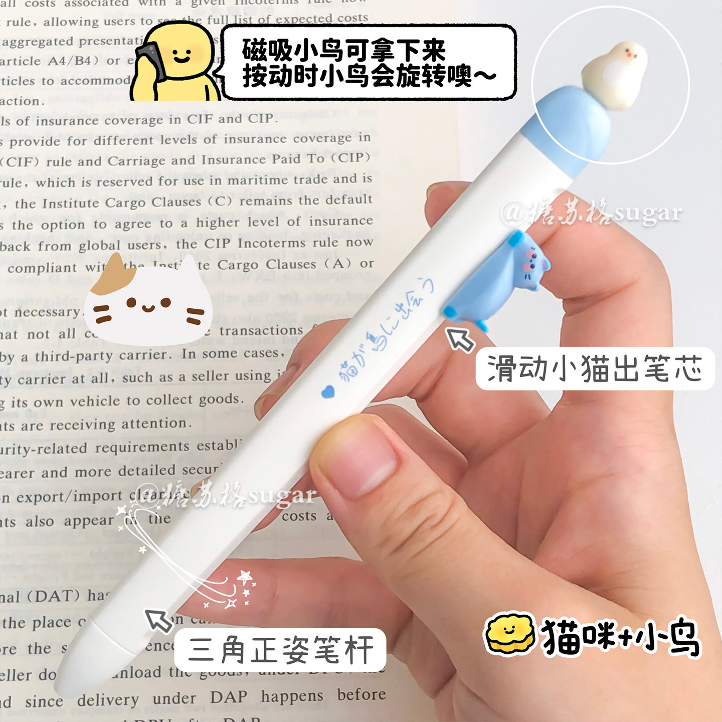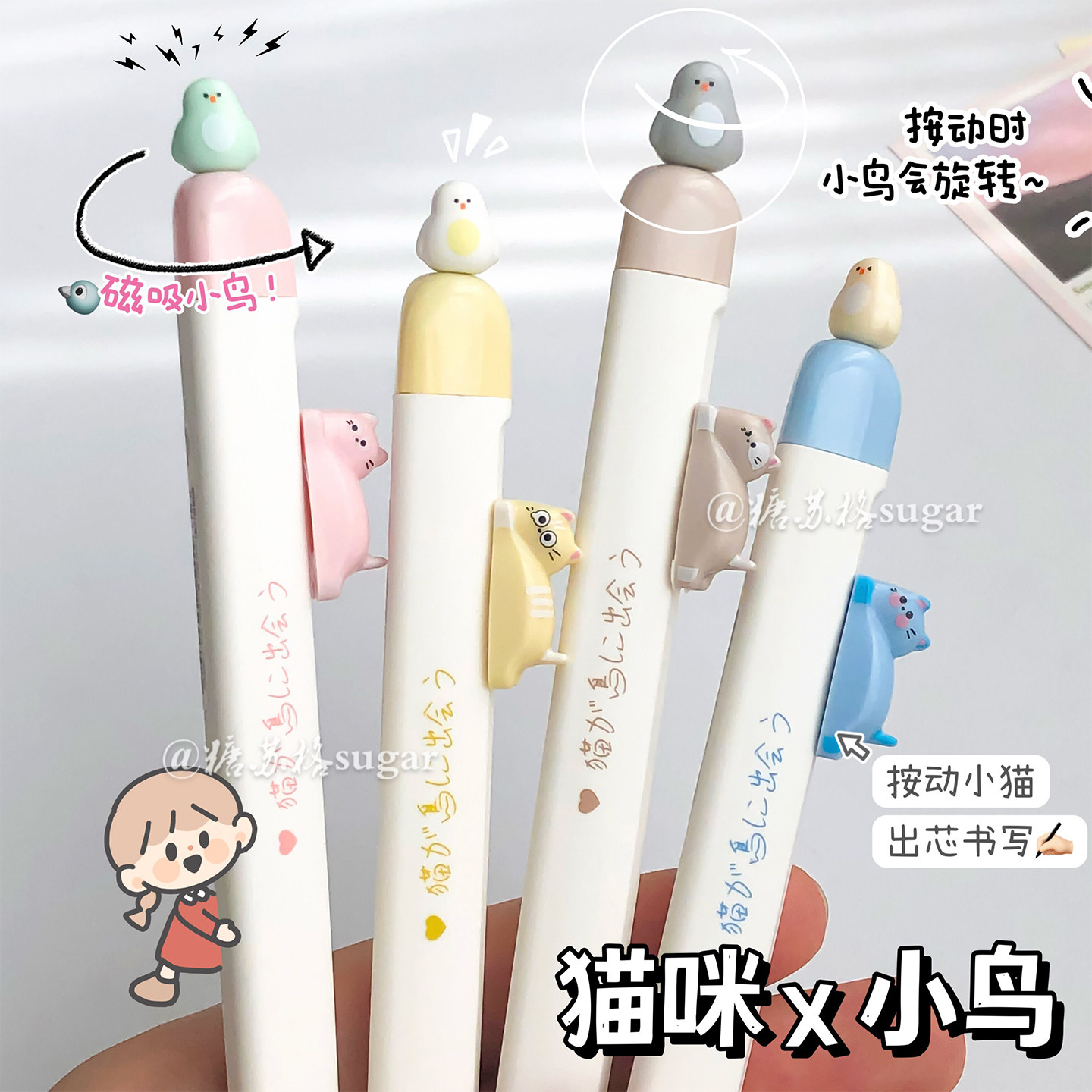 磁吸猫咪笔凡物象猫猫小鸟中性笔ins高颜值学生0.5速干刷题笔黑笔