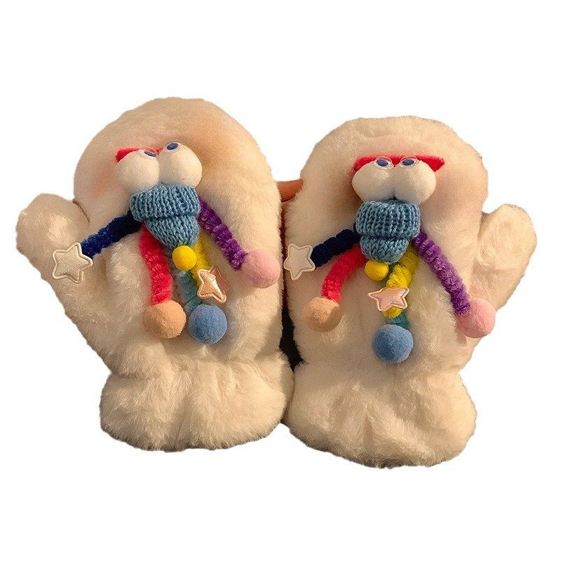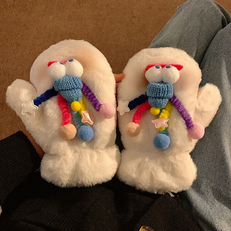 女款可爱搞怪毛绒连指手套冬季保暖加绒加厚毛茸茸秋冬天防寒学生