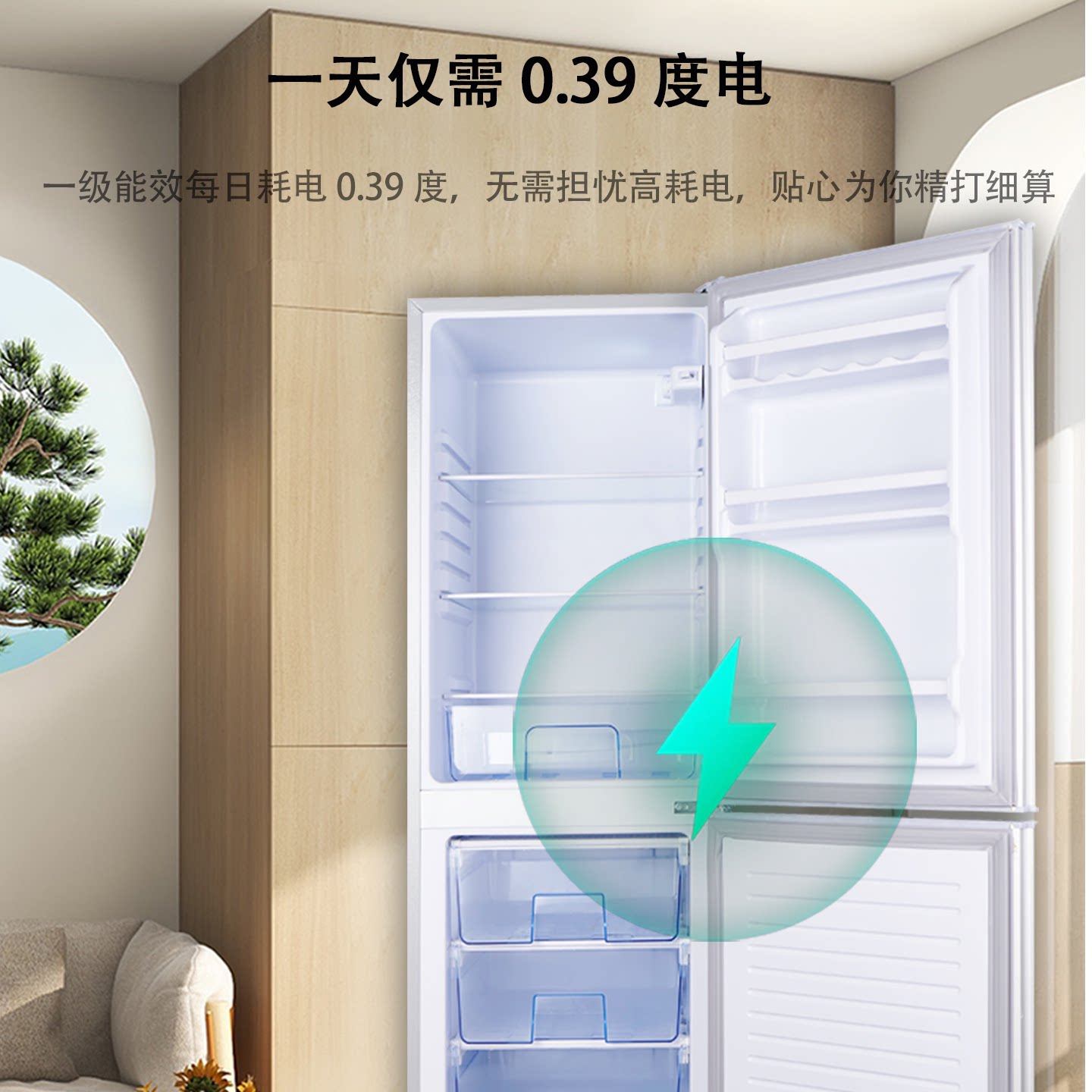 Hairex小冰箱一级能效家用宿舍出租房冷冻双开门中型迷你小型冰箱