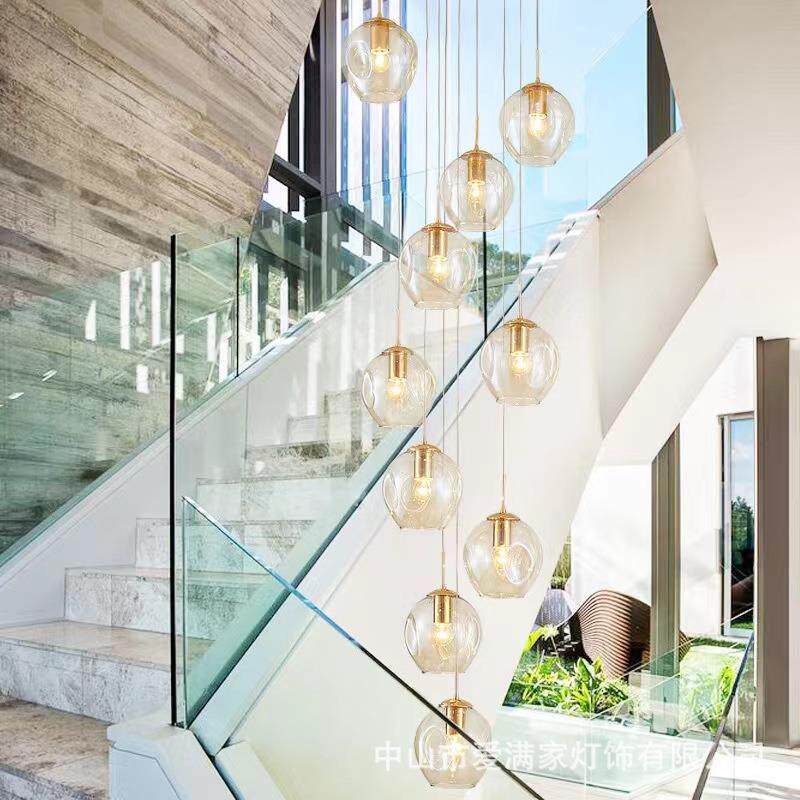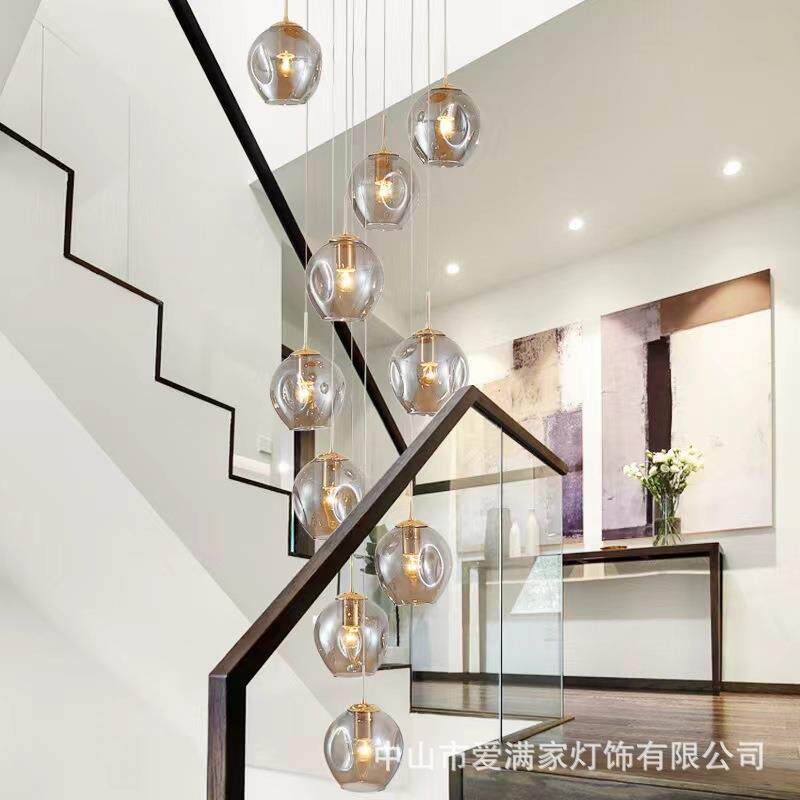 楼梯吊灯复式楼梯间长吊灯别墅酒店旋转现代简约创意loft小公寓灯