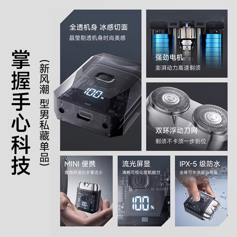 【免费试用】剃须刀男士电动迷你便携刮胡刀官方正品2025年新款