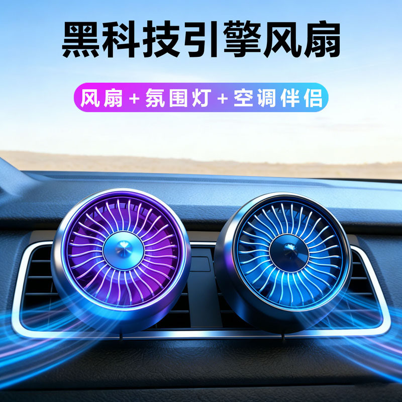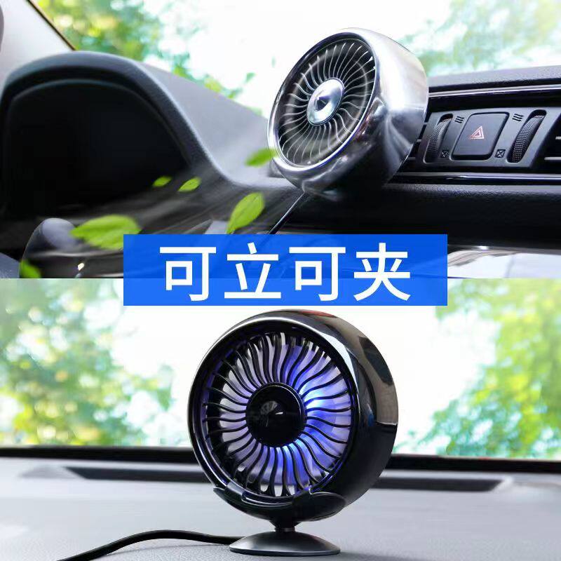 车载电风扇12V24V汽车货车出风口仪表台强力降温多功能车内小风扇