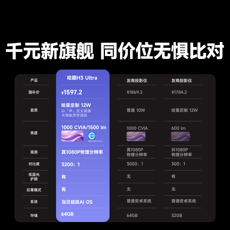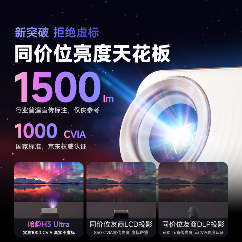 哈趣H3Ultra投影仪家用超高清可连手机哈曼联名4K解码新款1080P投影机智能家庭影院投屏宿舍卧室客厅无需幕布