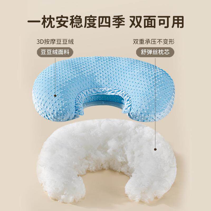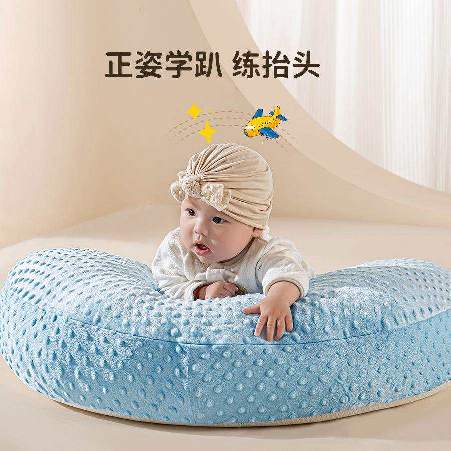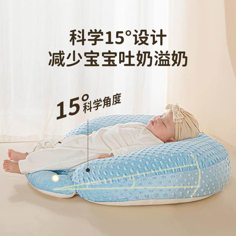 蓝豆豆儿童枕头新生儿防吐奶弧形斜坡枕四季双面可拆卸喂奶枕头