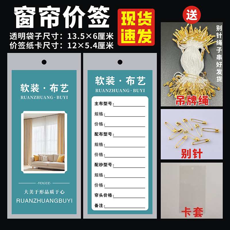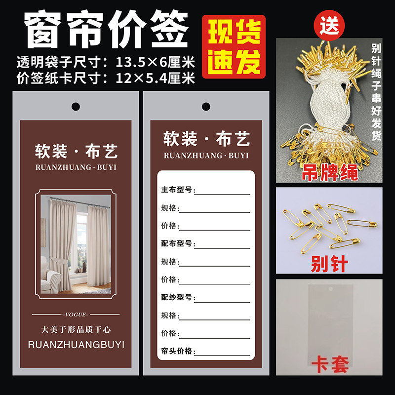 窗帘吊牌按扣价格标签袋布艺墙布标价签定做软装窗纱挂价格牌订制