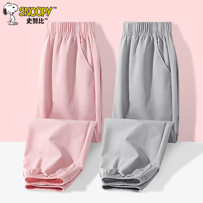 史努比女童速干裤儿童夏薄款防蚊裤粉夏季长裤女大童冰丝运动裤子