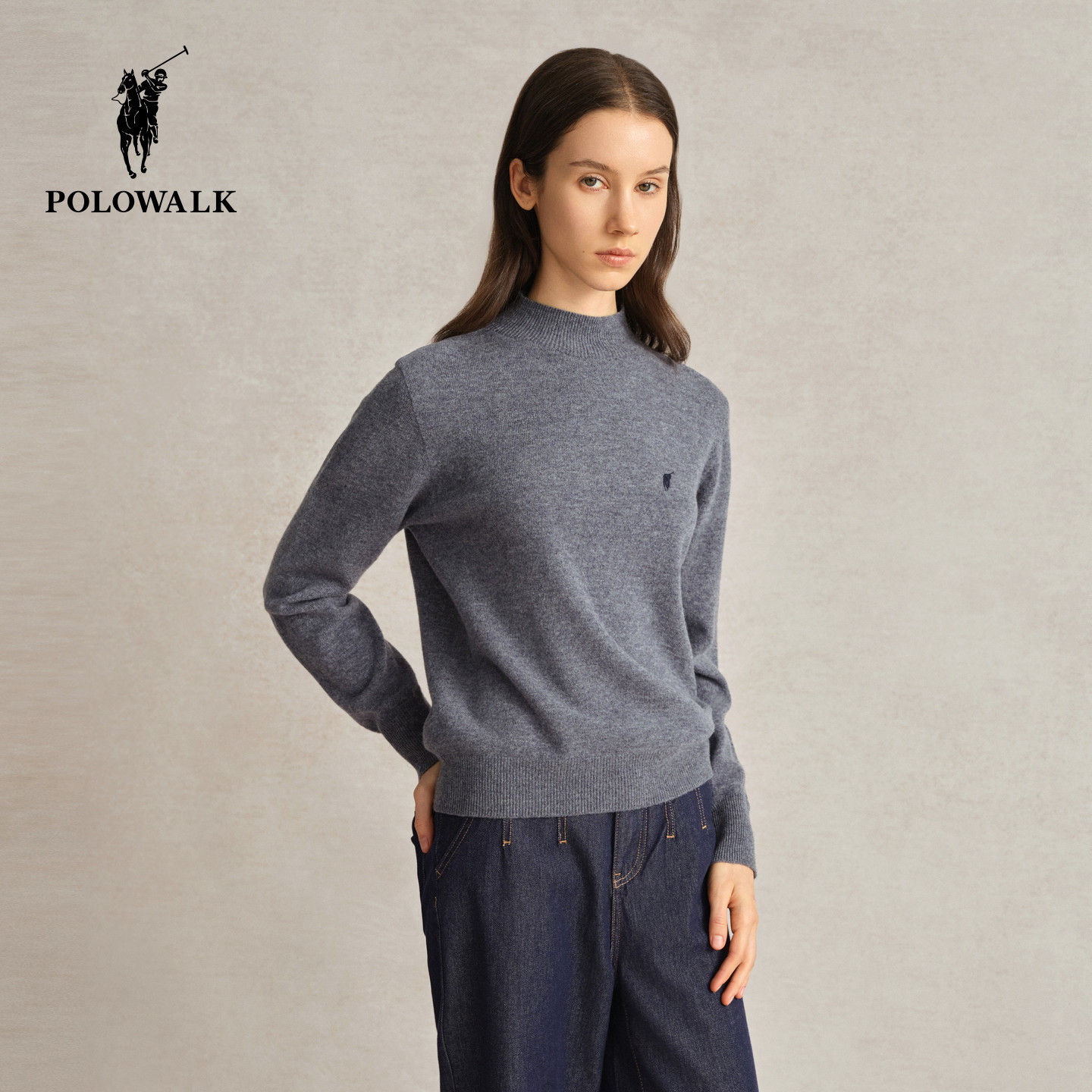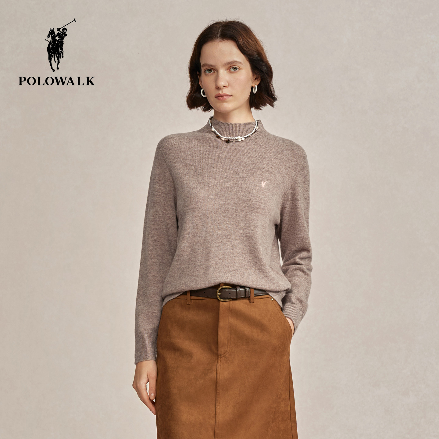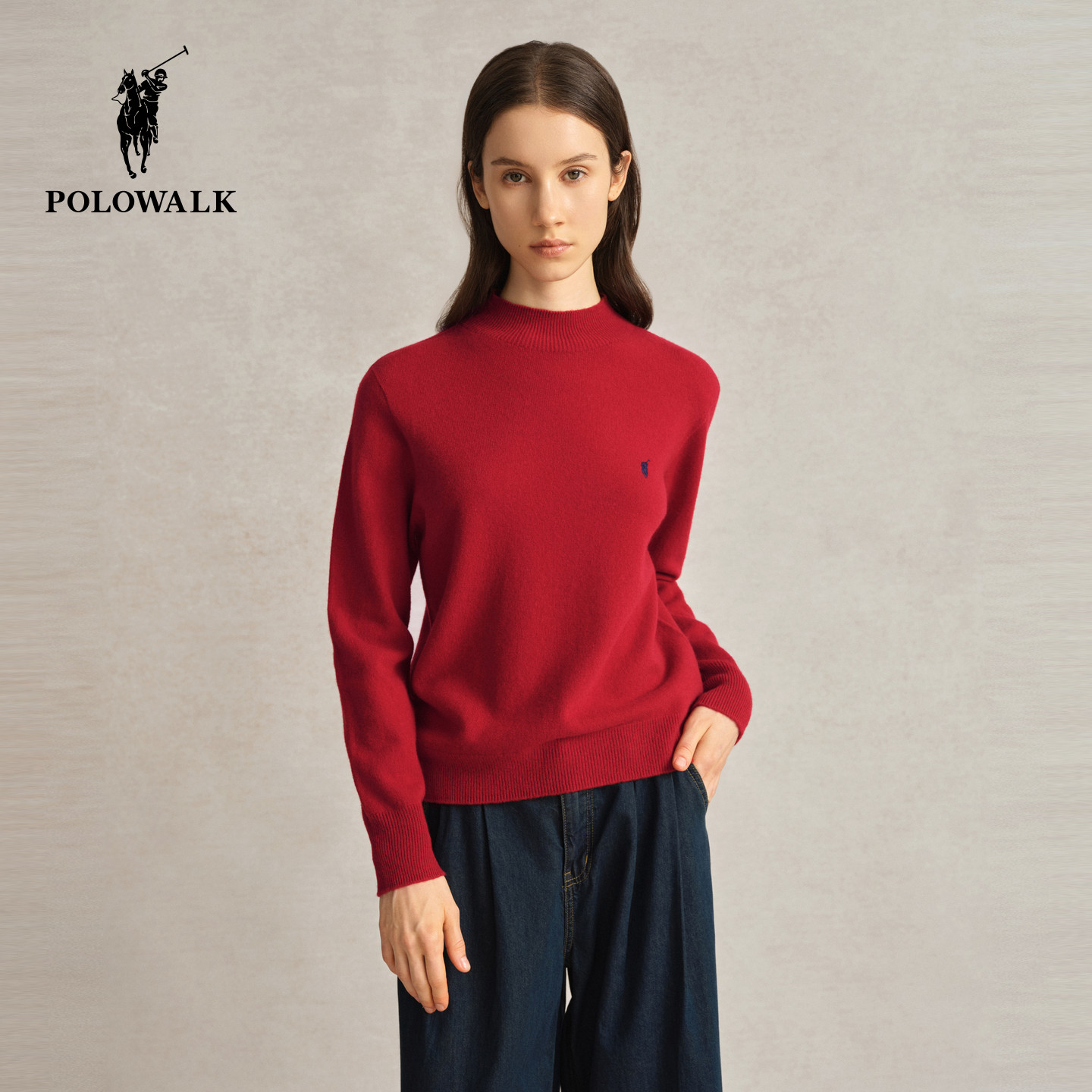 【特惠】POLOWALK女士打底衫秋冬针织半高领内搭红色毛衣羊毛衫