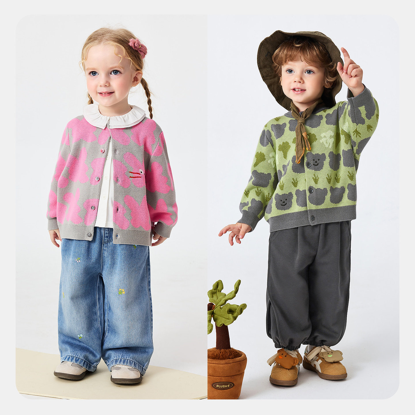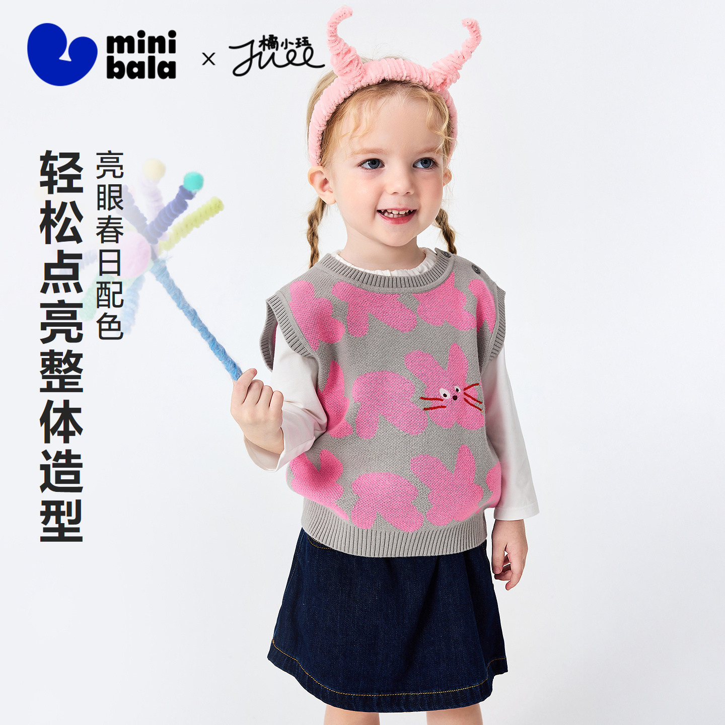 迷你巴拉男女童宝宝开衫萌趣圆领植物纤维柔软透气不易起球春新品
